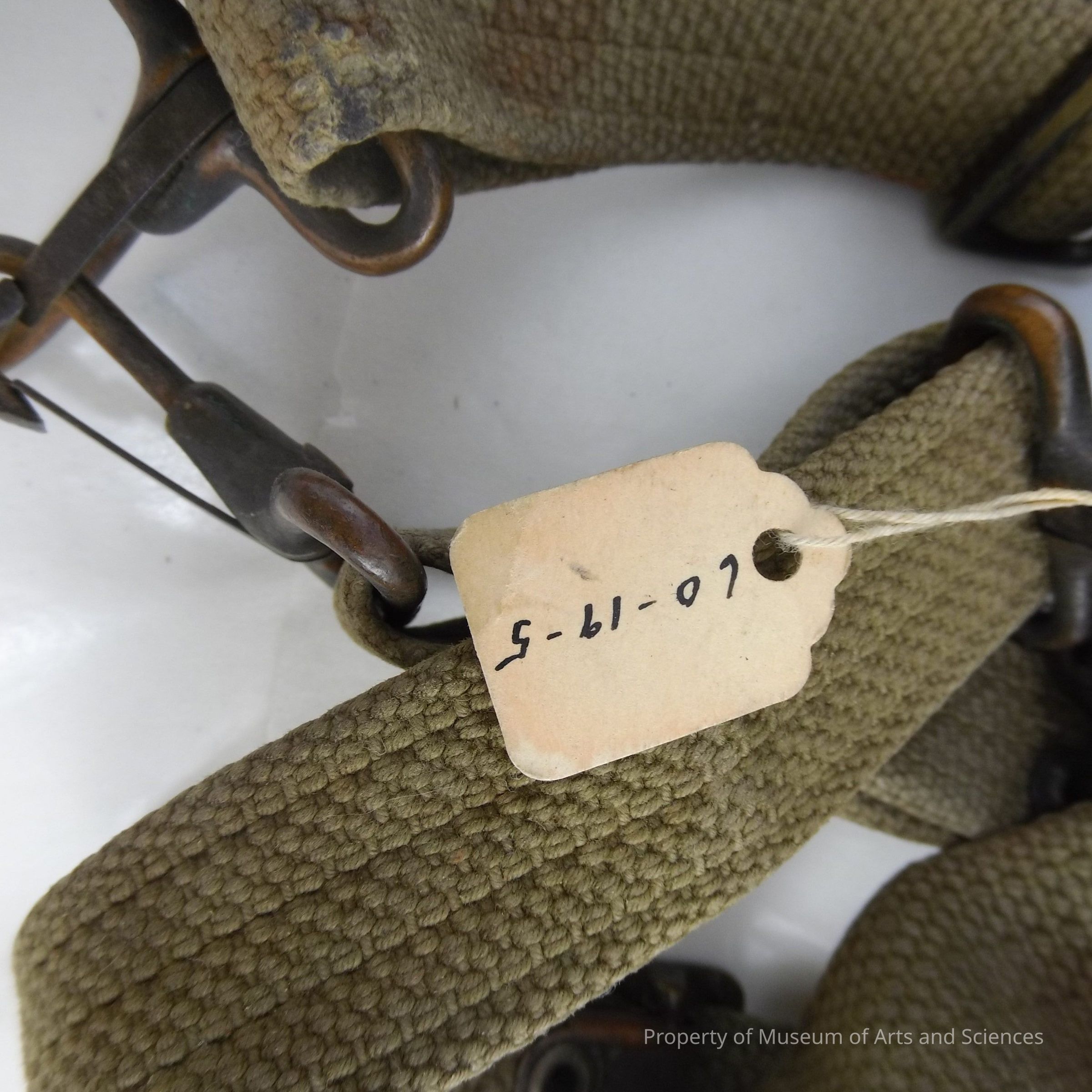 Knapsack khaki used in WWI Cataloged by L.L. 5/13/60
