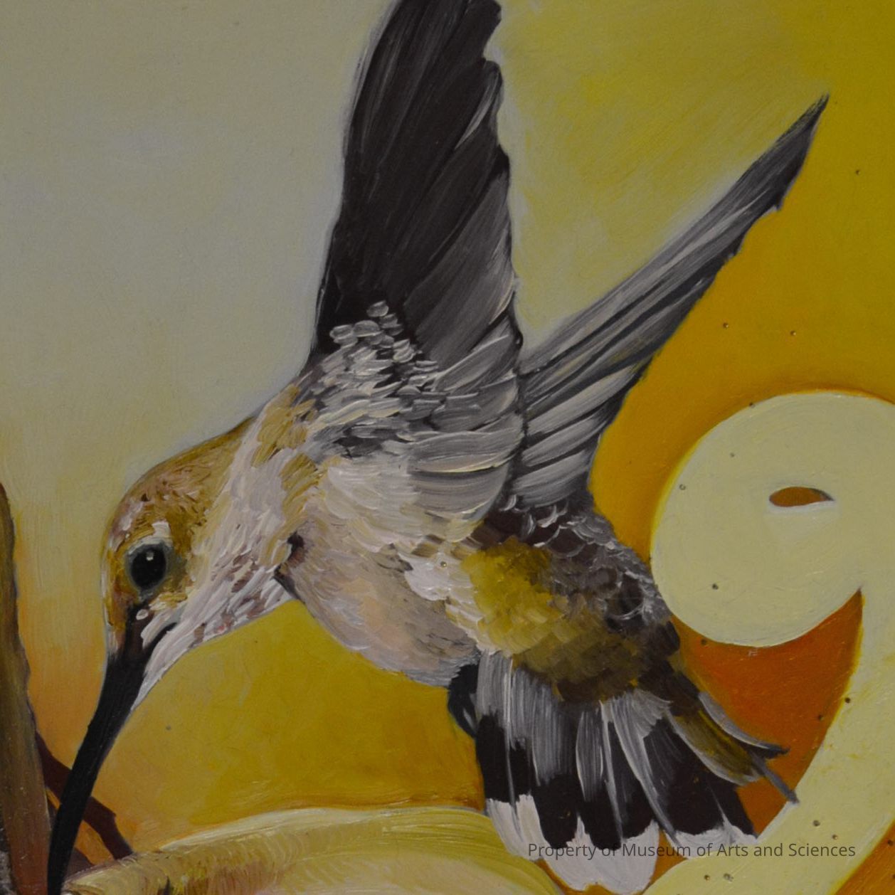 Oil on mylar with gold beads; 12h x 9w inches, unframed; signed and dated 2012 at lower left.