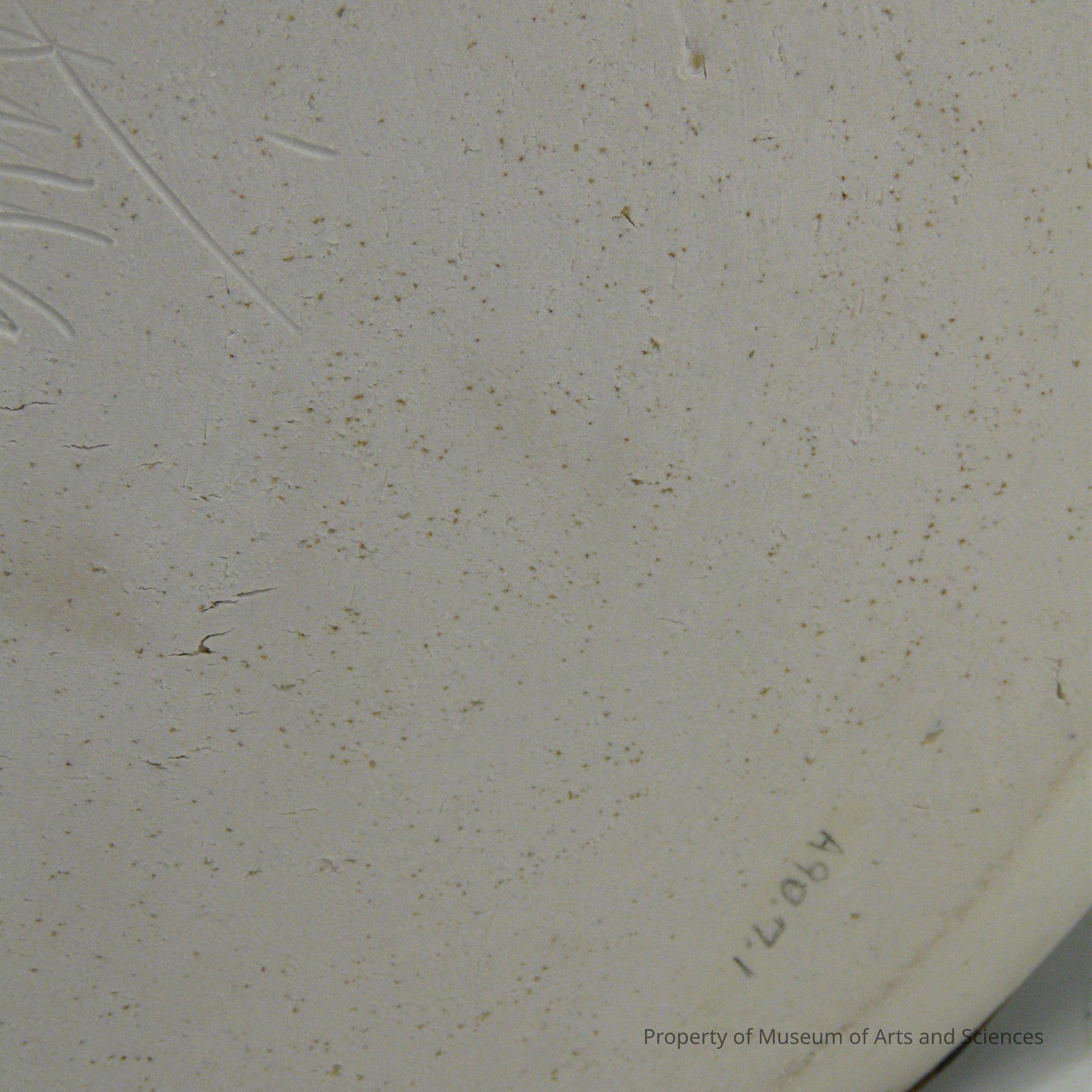 Bowl-like Sculpture. Thread covered wooden "chopsticks" crossed over opening.