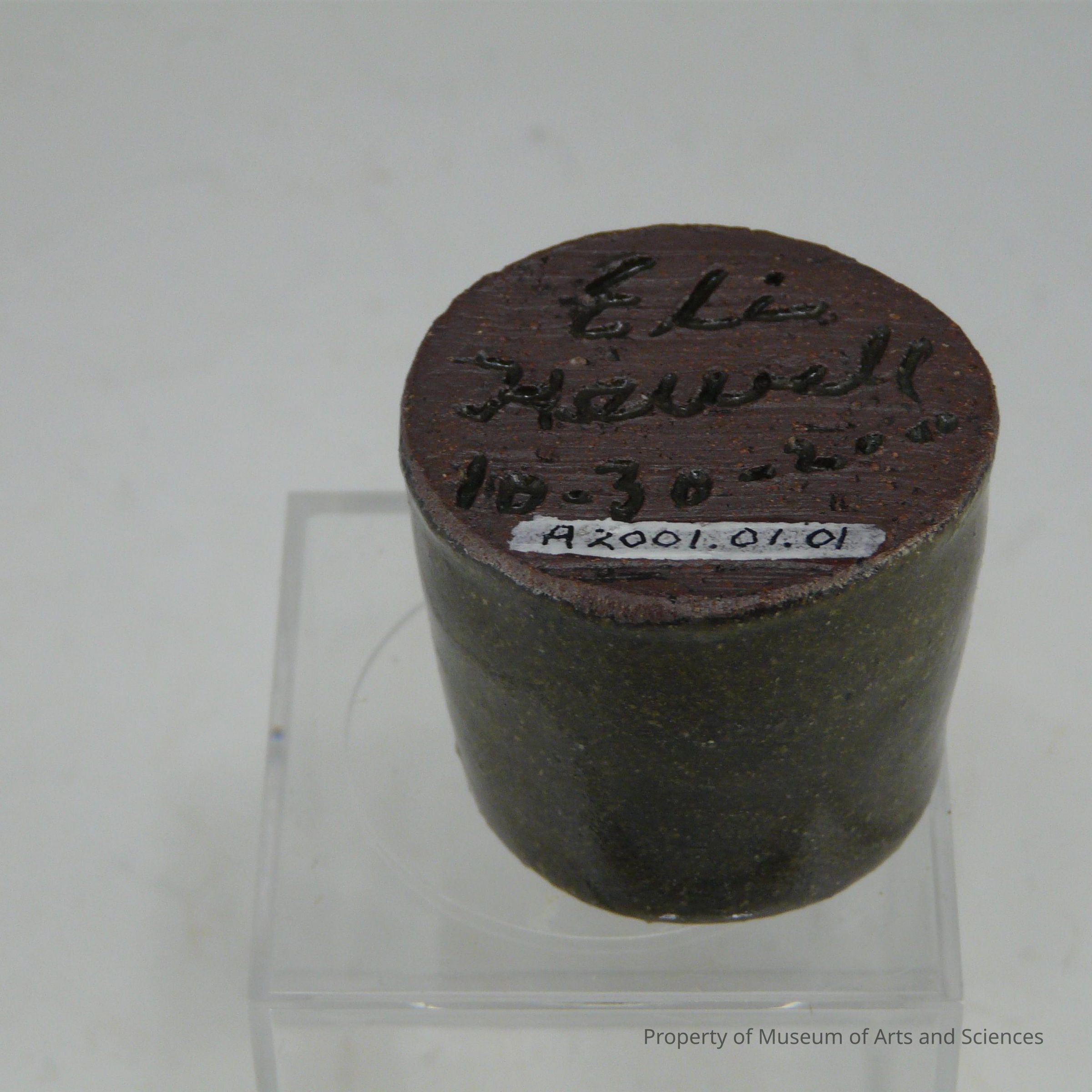 Small ink pot vessel, earthenware with green glaze- 2008 Inventory. Photo Of child with potter's wheel