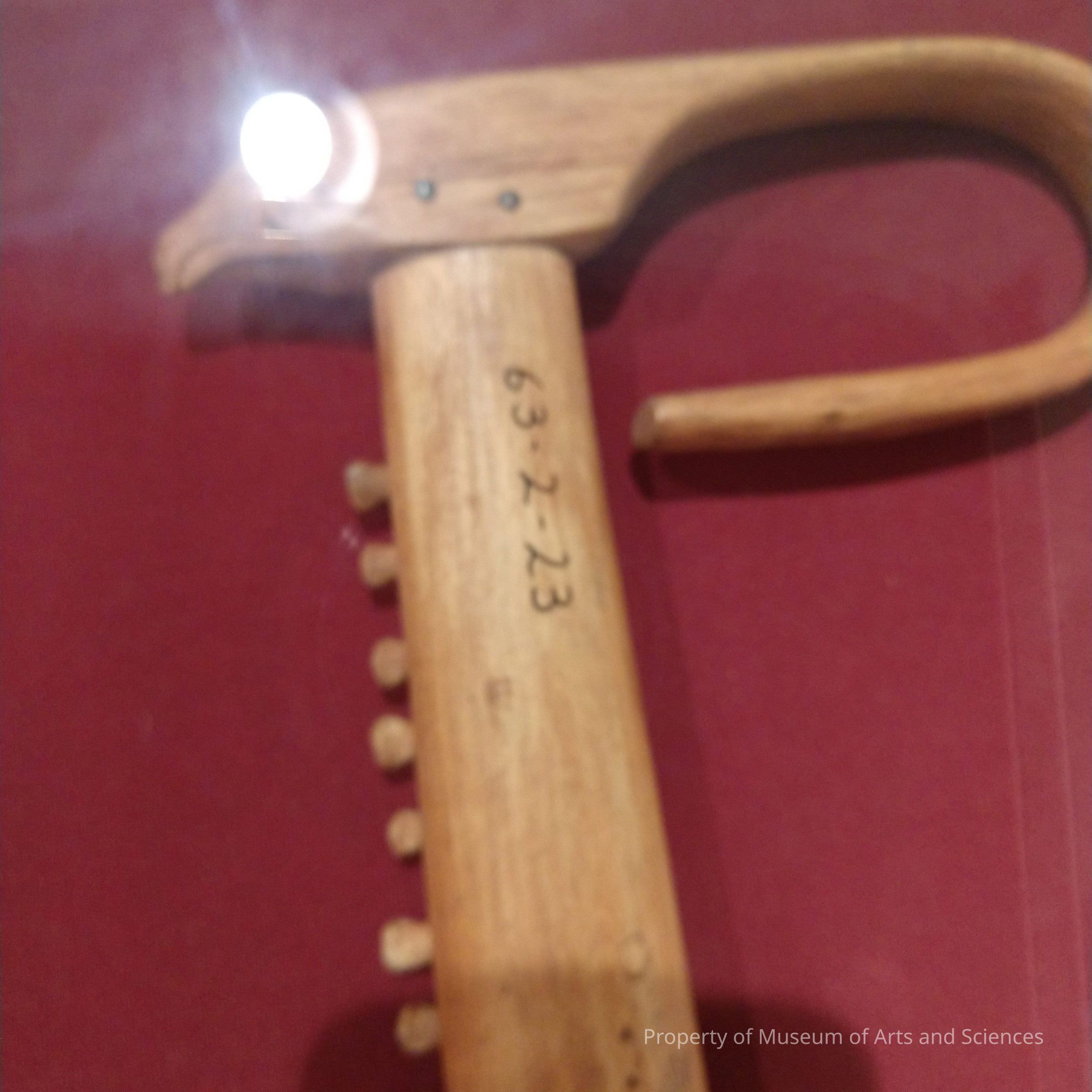 3' long 50 woodpegs with 50 carved pictographs of the 50 hereeditary chiefs Bird's head on top of caneArtwork Details