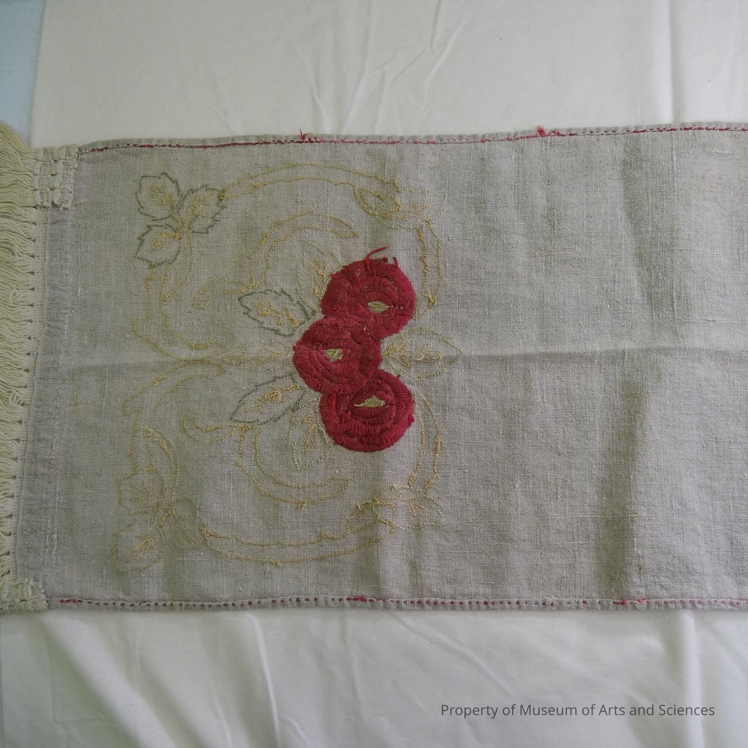ecru linen w/ embroidered flowers- greek
