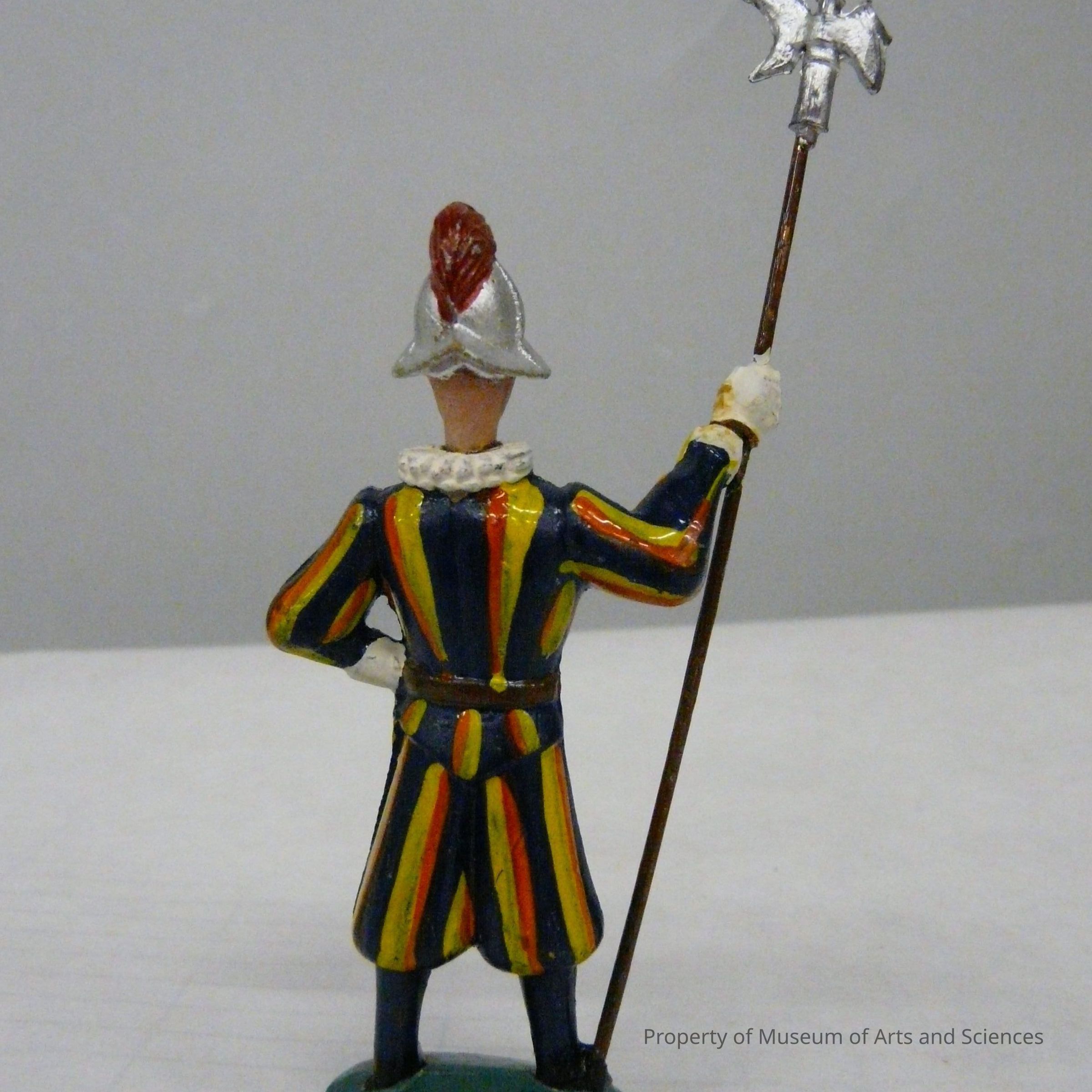 Swiss Vatican Guard doll in costume On base: "Figir Brevett Italia"