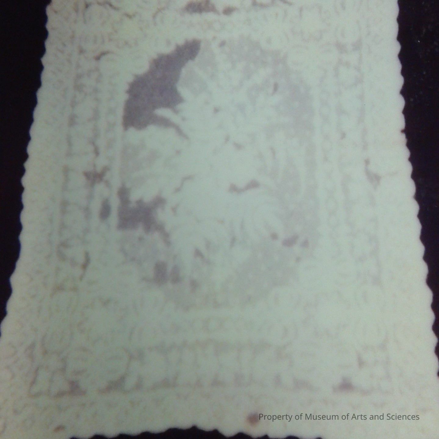 Patterns created in this creamy beige dolie are flowers, leaves, ribbon, and delicate repeated geometric patterns. The handkerchief linen which forms many of the shapes is sewn on with a small chain stitch. The chain stitch and other embroidery stitches are sewn right onto the netting to form floral patterns in the center.Artwork Details