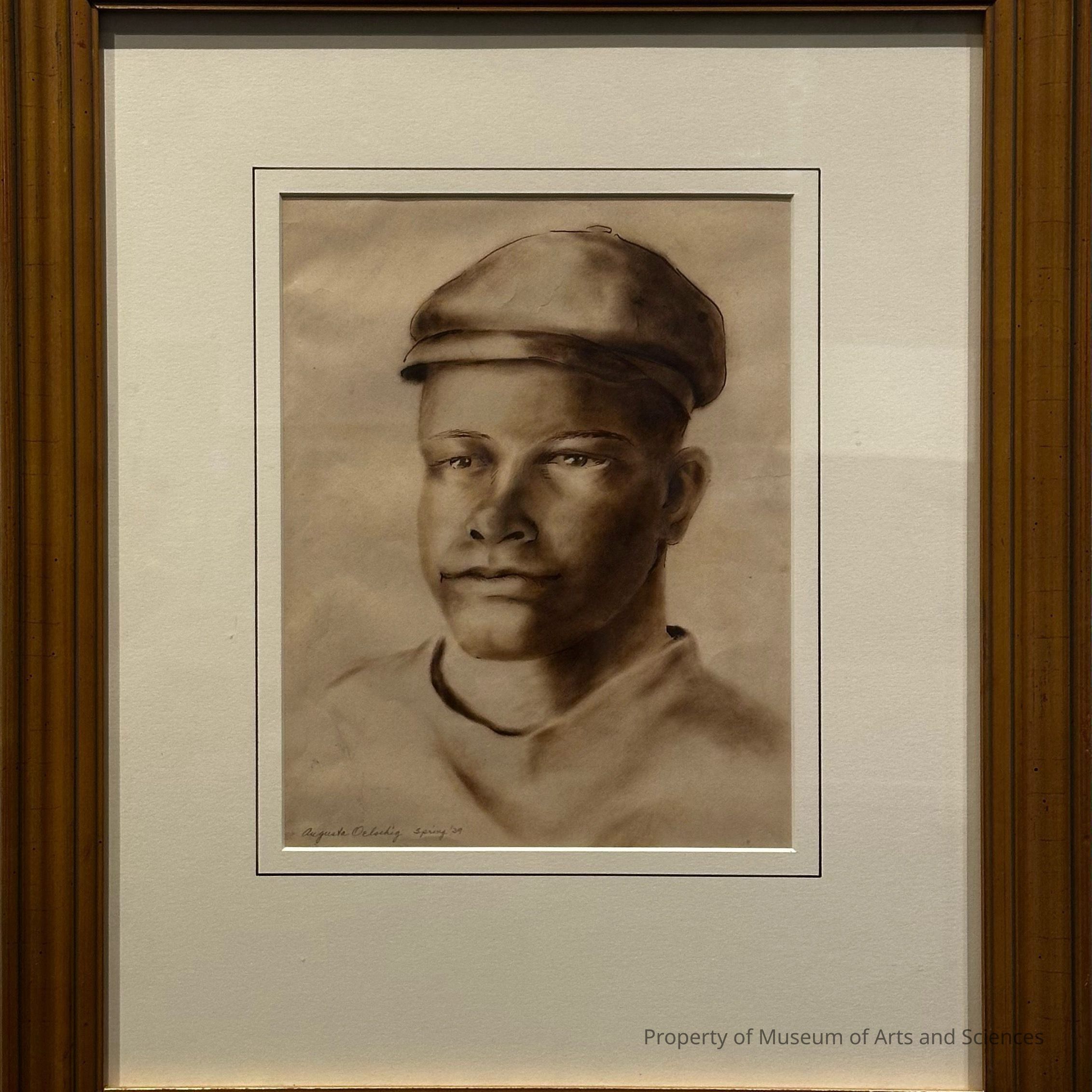 Head study of an African American man wearing a cap and shirt. They study is typical of Oelschig's work focussing on Savannah scenes, personages, and social issus.Artwork Details