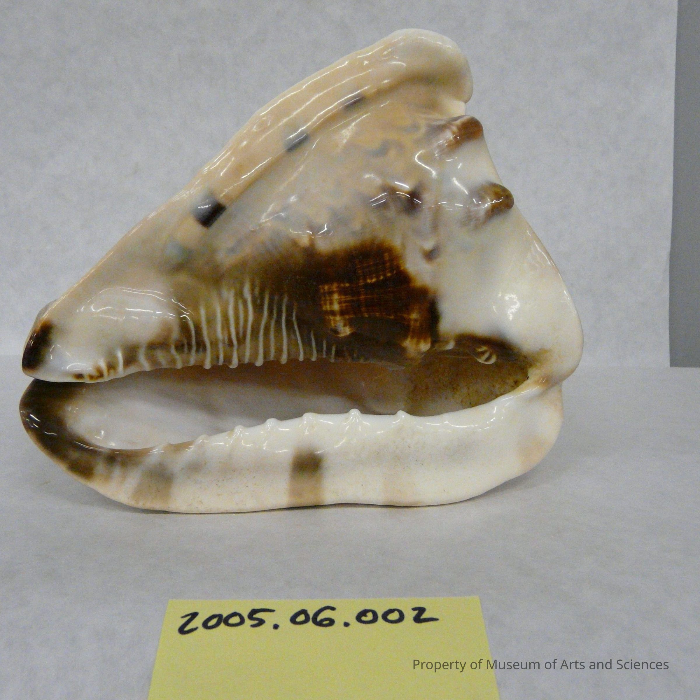 Mature King Helmet shell. Found along southeast coast of the US, in the Caribbean, and off south America. Shell is used for cameos; its flesh is edible