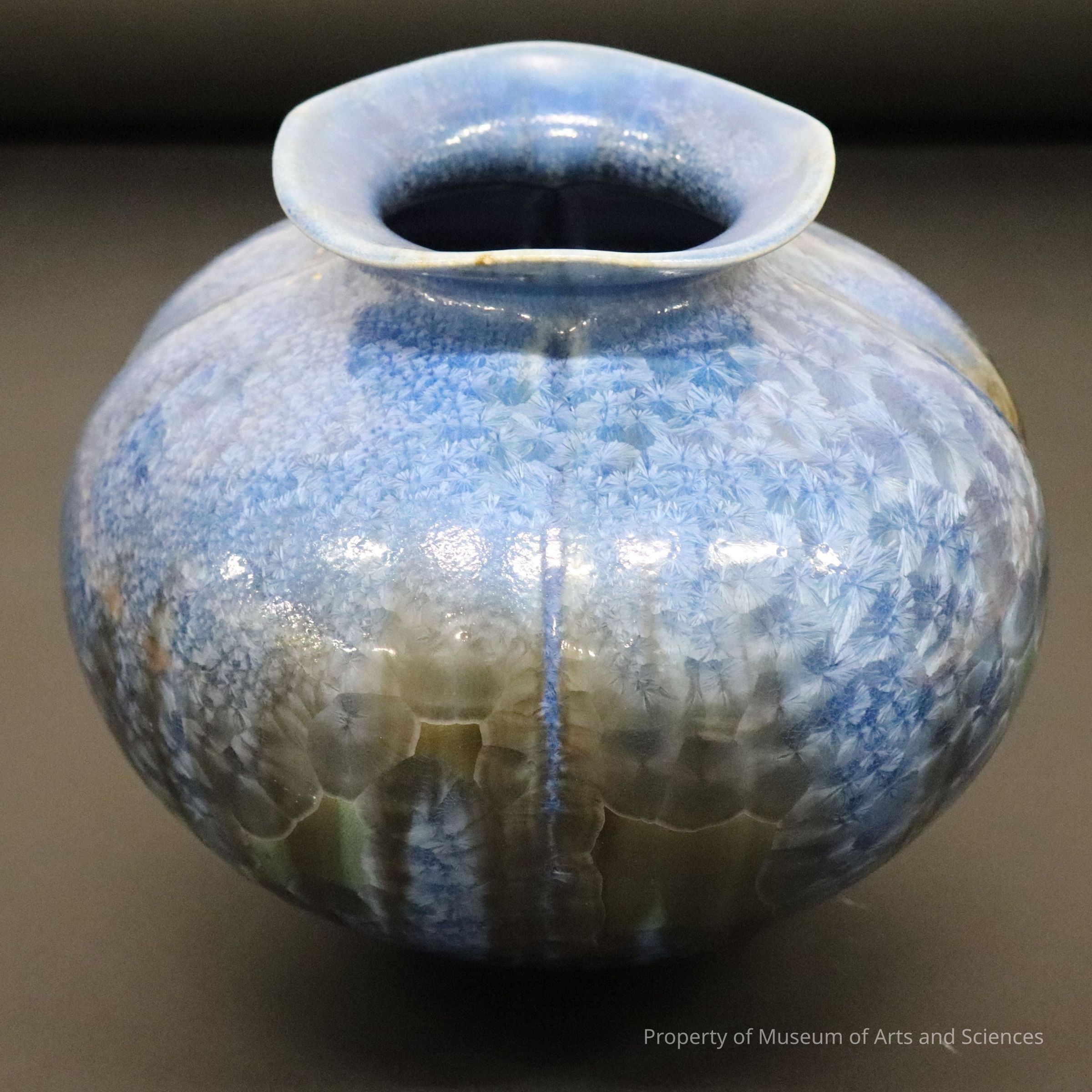 Porcelain clay with blue crystalline "Flambeaux" glaze