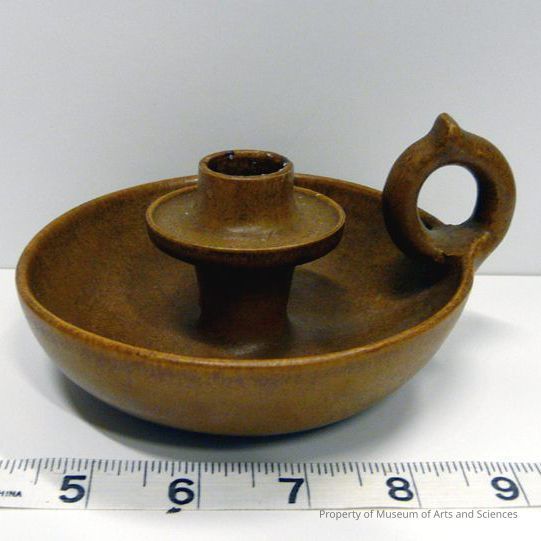 Functional stoneware with Mountain Gold glaze; brown/black color; ring handle; stamped on bottom; label on side: HAND MADE BY W. J. GORDY CARTERSVILLE, GACollection