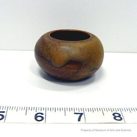 Functional stoneware with Mountain Gold glaze; brown/black color; stamped on bottom.Collection