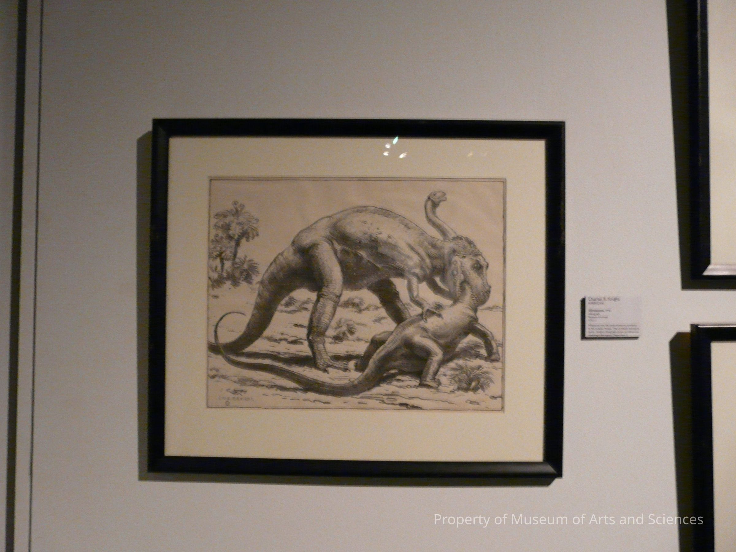 Allosaurus was the most numerous predator in the Jurassic Period. They probably hunted in packs. Knight’s lithograph shows an Allosaurus attacking a Sauropod, (“lizard foot.”)Collection