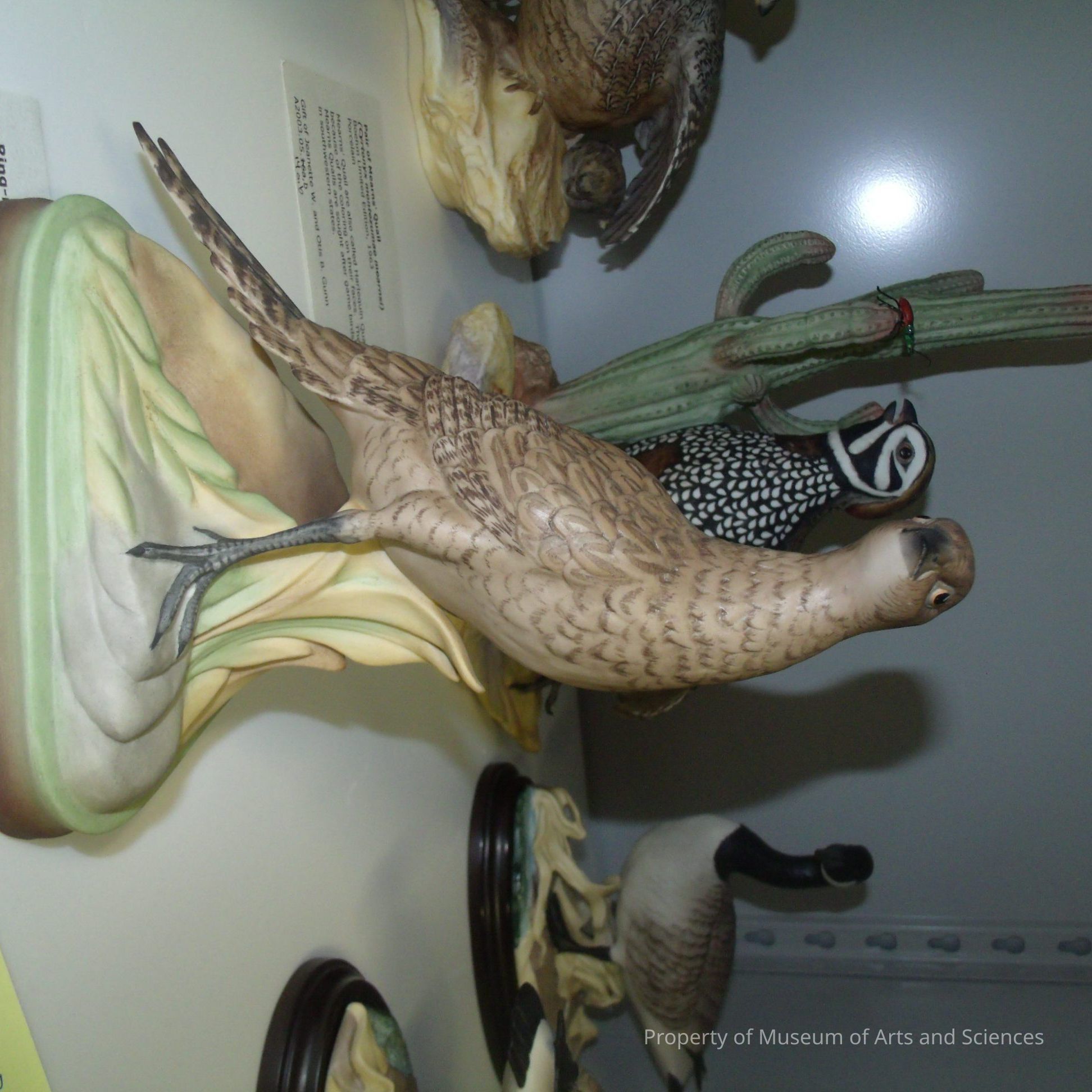 The female is standing erect with its head and neck turned towards its proper right on a brown and beige triangular base. The work is stamped in a shield on the base: Boehm Limited Edition/Ring-Necked Pheasants/409/Made in USA.Collection