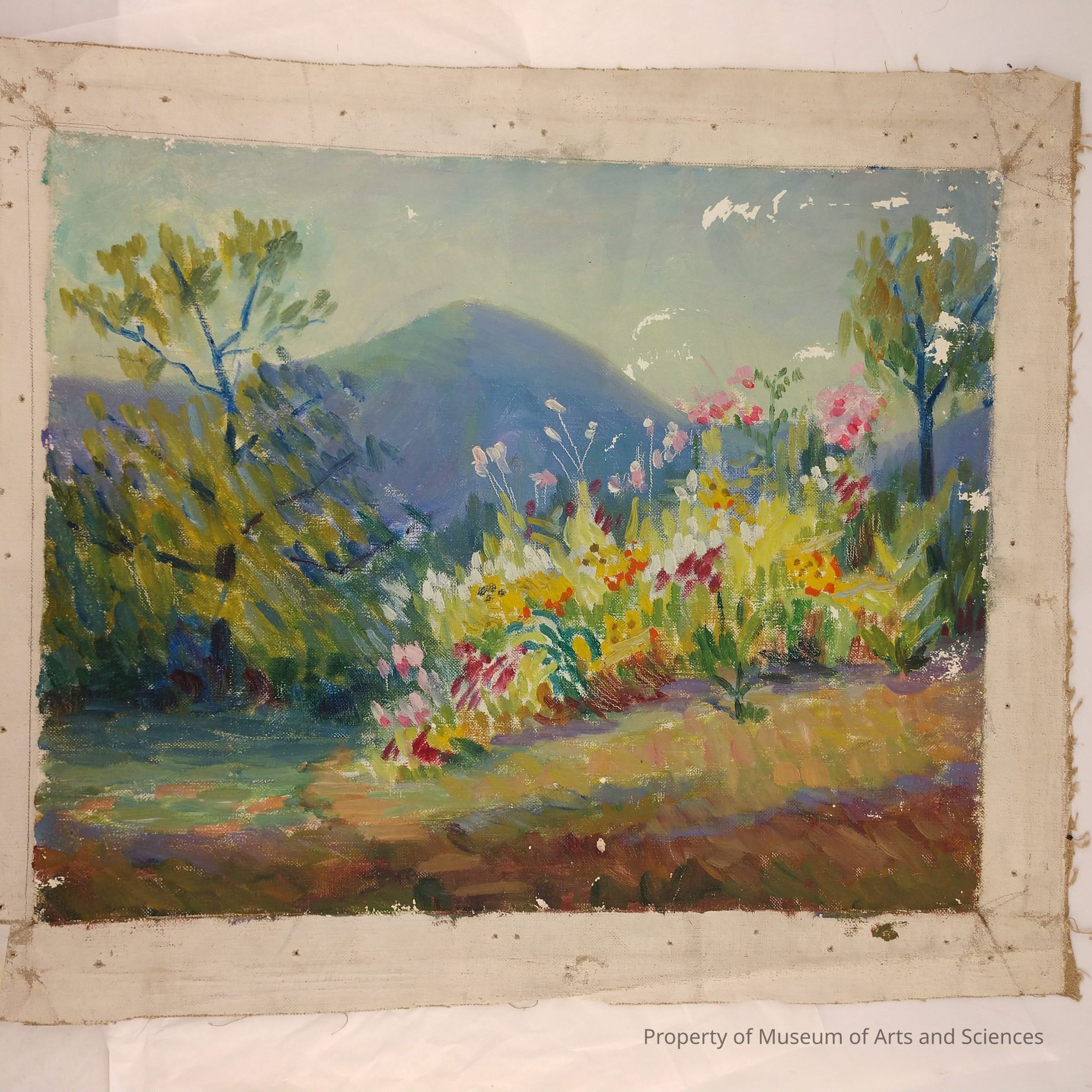 ? Tryon Mountain in background; bank of flowers in bloom in foreground