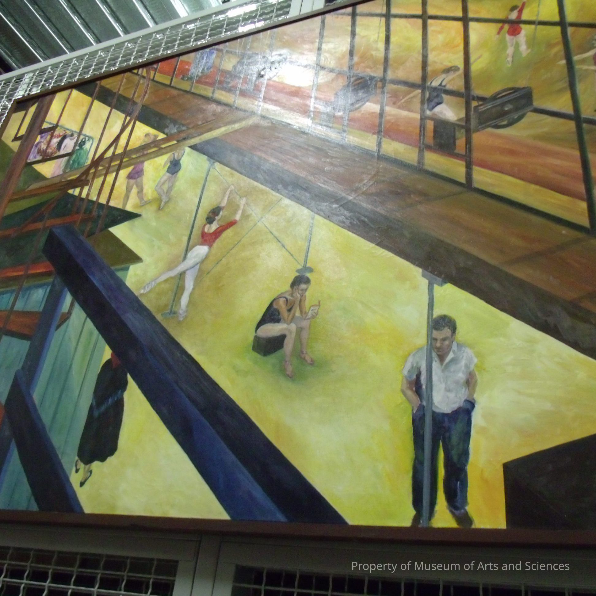 "Backstage at the Grand" was exhibited as part of the artist's retrospective at Wesleyan College in 2014.