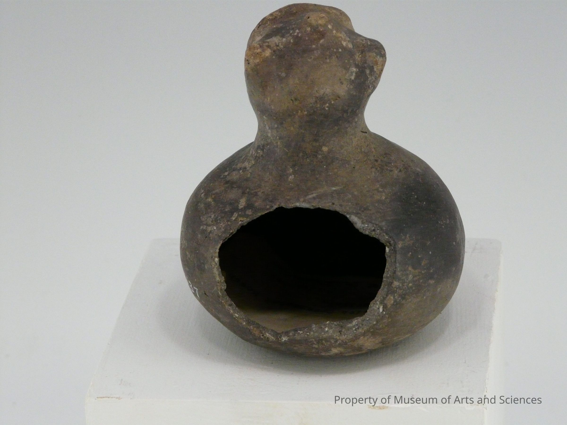 ceramic-hooded mouth effigy of owl