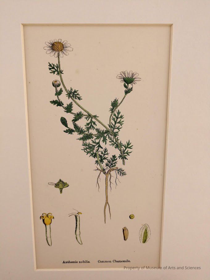 Central picture of plant showing bud, flower, stem, leaves and roots; flower is yellow and white. Below are six drawings of the parts of the flower.Artwork Details