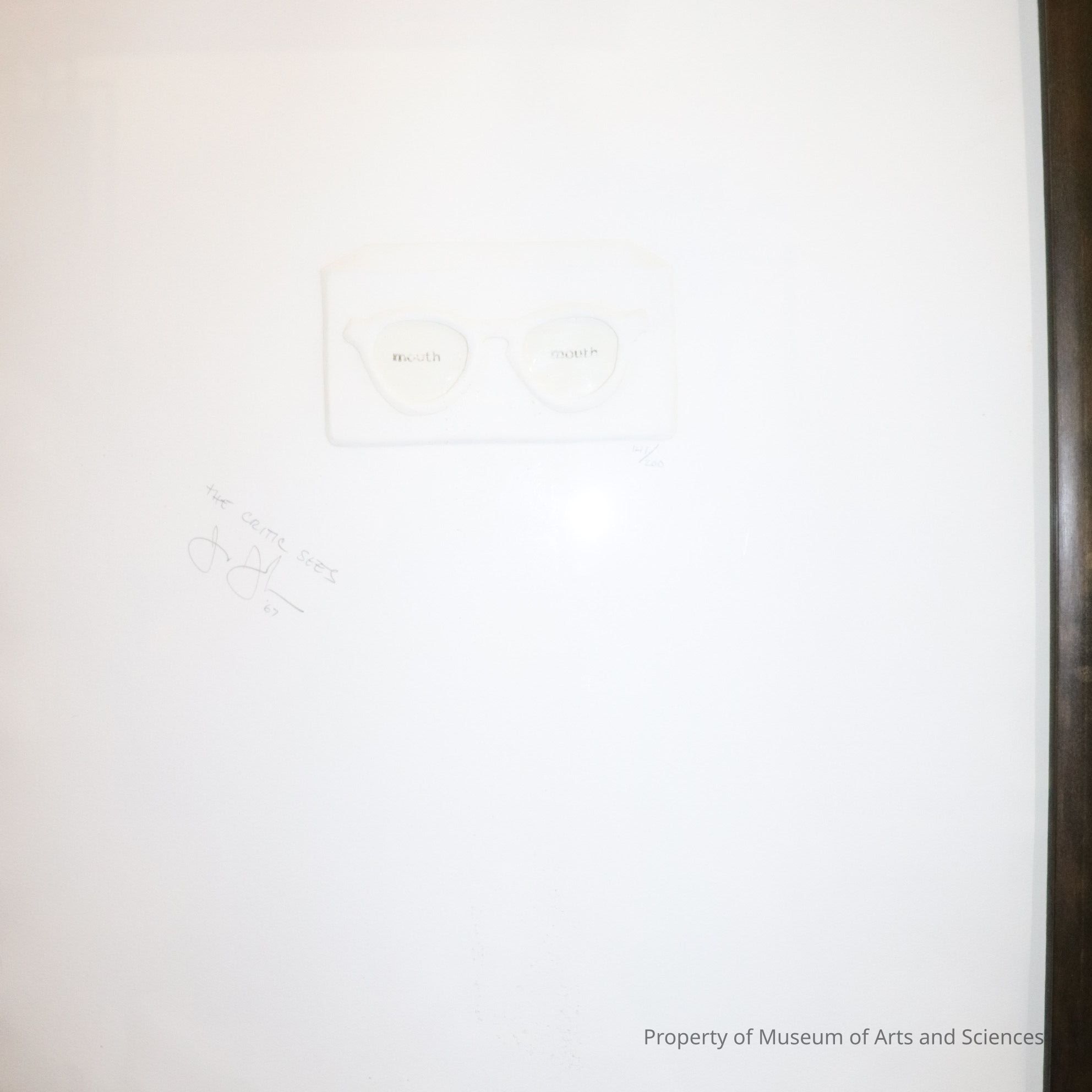 Embossed eye-glasses on paper. Signed. Framed