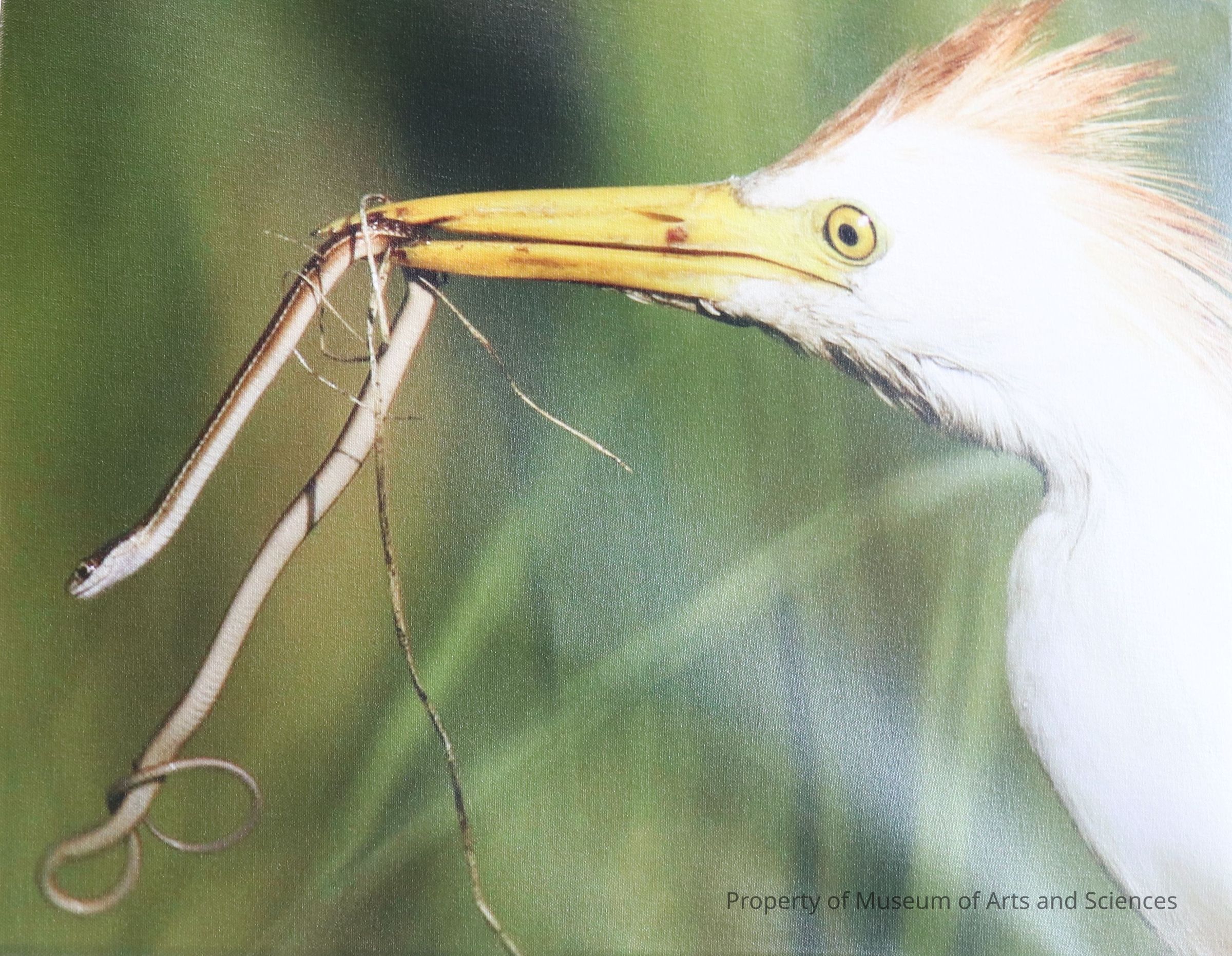 The family Ardeidae contains the herons, egrets, and bitterns. Cattle Egrets are common in Georgia's agricultural and wetland areas, easily identifiable by their small white bodies, short yellow bills, and compact appearance. They are known for their habit of following livestock to feed on disturbed insects and frogs, sometimes even perching on animal's backs. These birds, which originated in Africa, Europe, and Asia, have successfully expanded to this continent, finding favorable habitats in the warm, rural landscapes of the Southern U.S. This bird was photographed in a wildlife refuge east of Savannah, Georgia.Collection