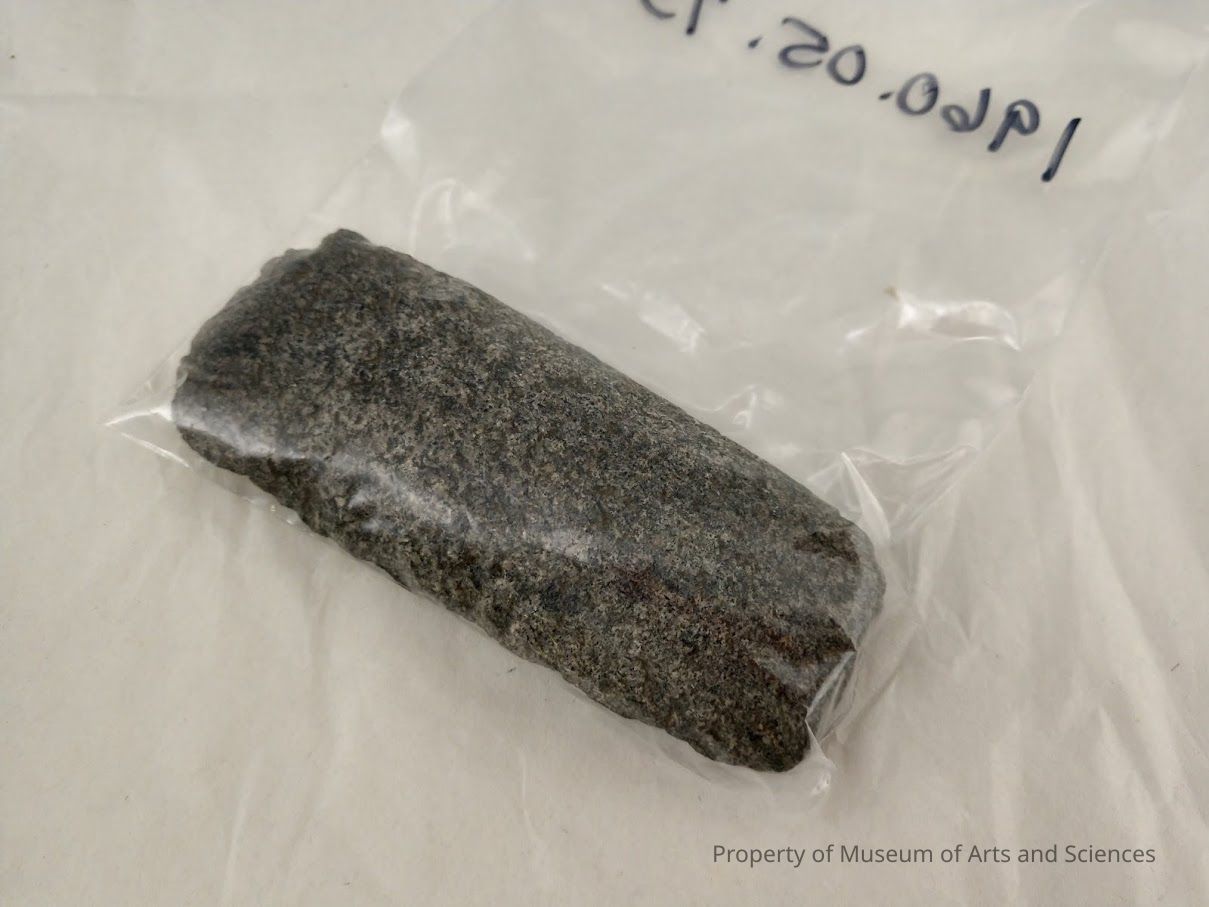 Smoothed, granitic stone shaped to edge at one terminusCollection