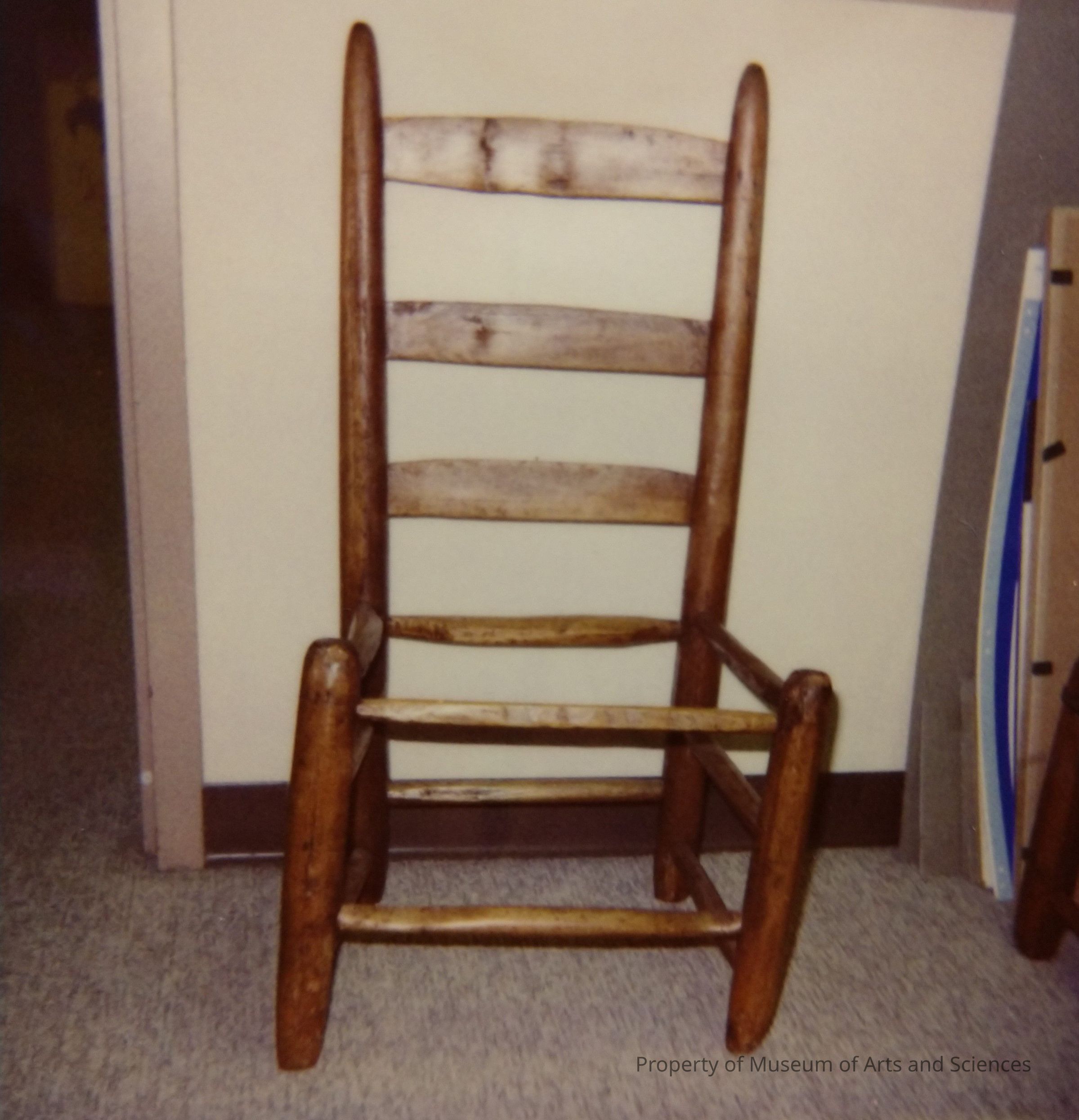 Wood ladderback - style straight chair hand-? somewhat rough finish no seatCollection