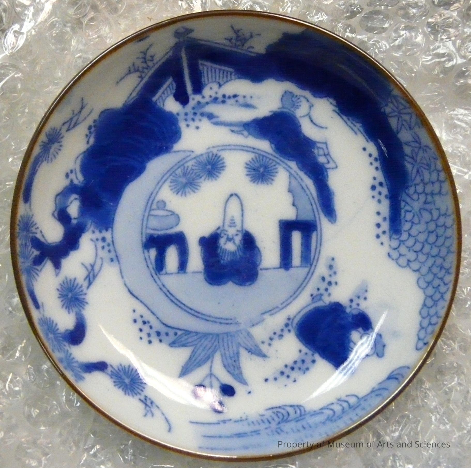 Chinese food plate with blue markings