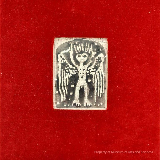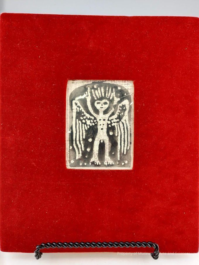 Matted w/ red velvet; reverse hold w/ scotch tape on board.Collection