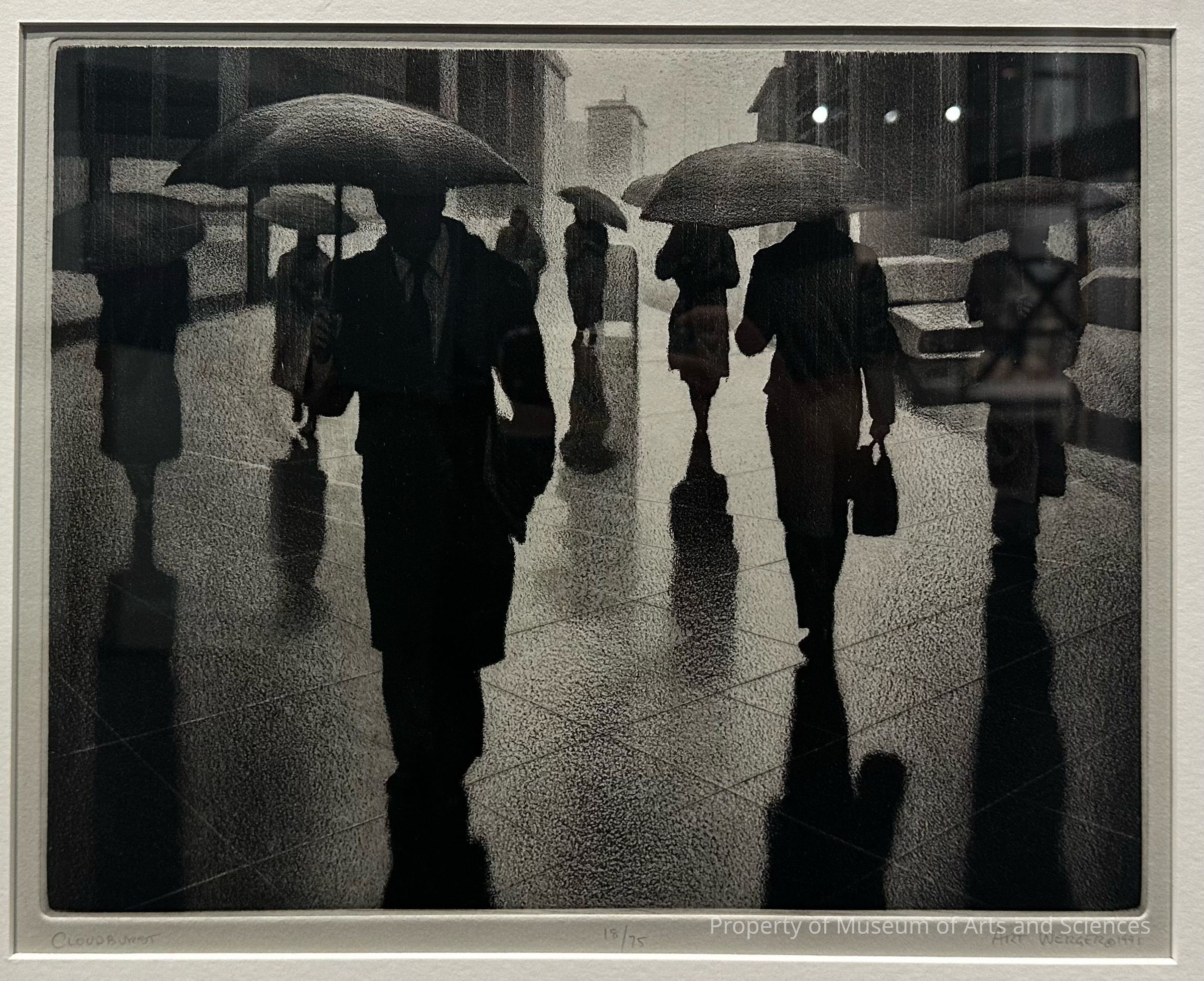 Art Werger 1991 Street scene with figures caught in a rainstormCollection