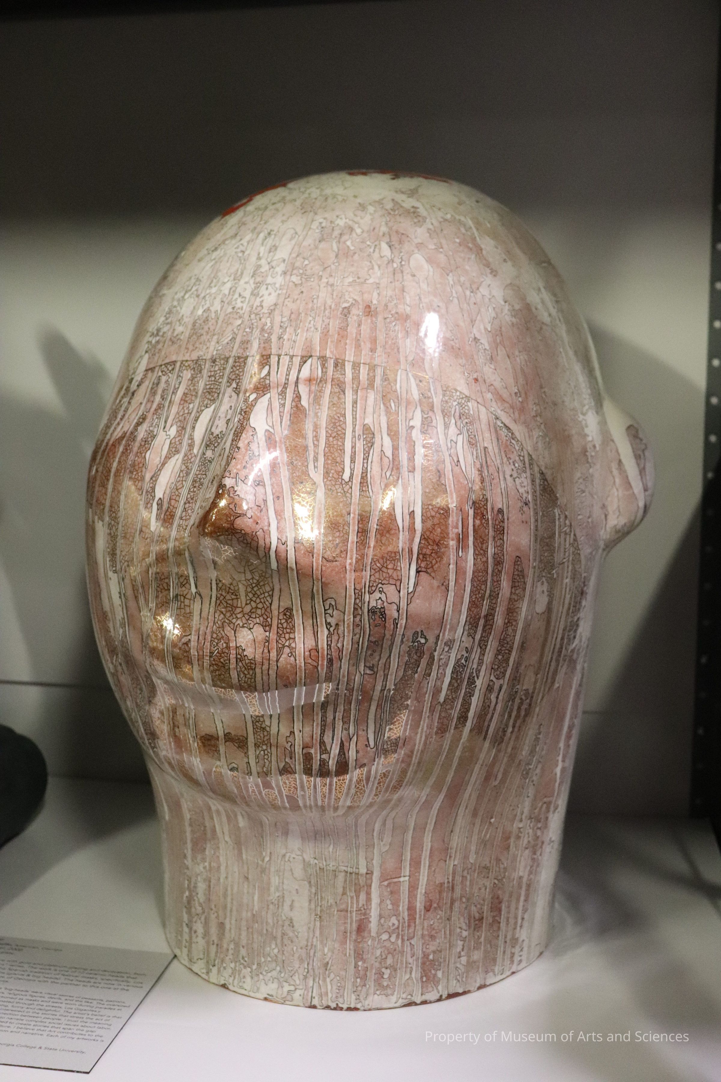 Large ceramic head with gold and platinum glazing and decoration.