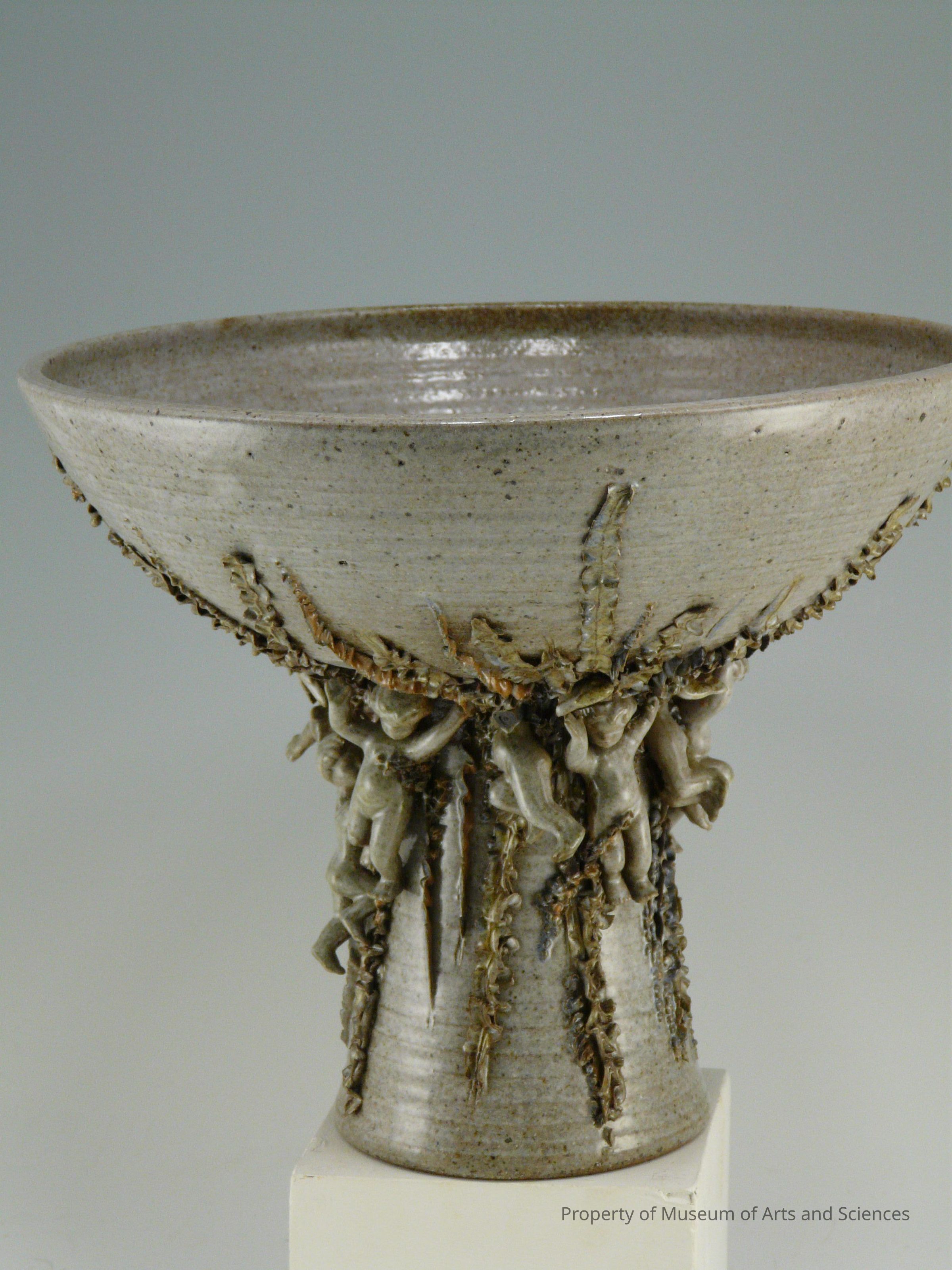 Stoneware with layered glazes and applied cupid decorationsArtwork Details