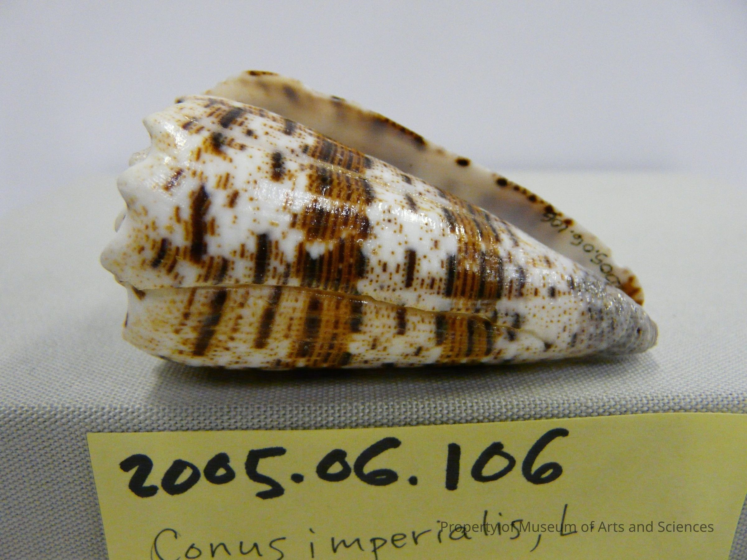 This species is found over a wide territory. It has yellowish chestnut markings with black dashes on a white ground color. It is fairly common and one of the finest species.Collection
