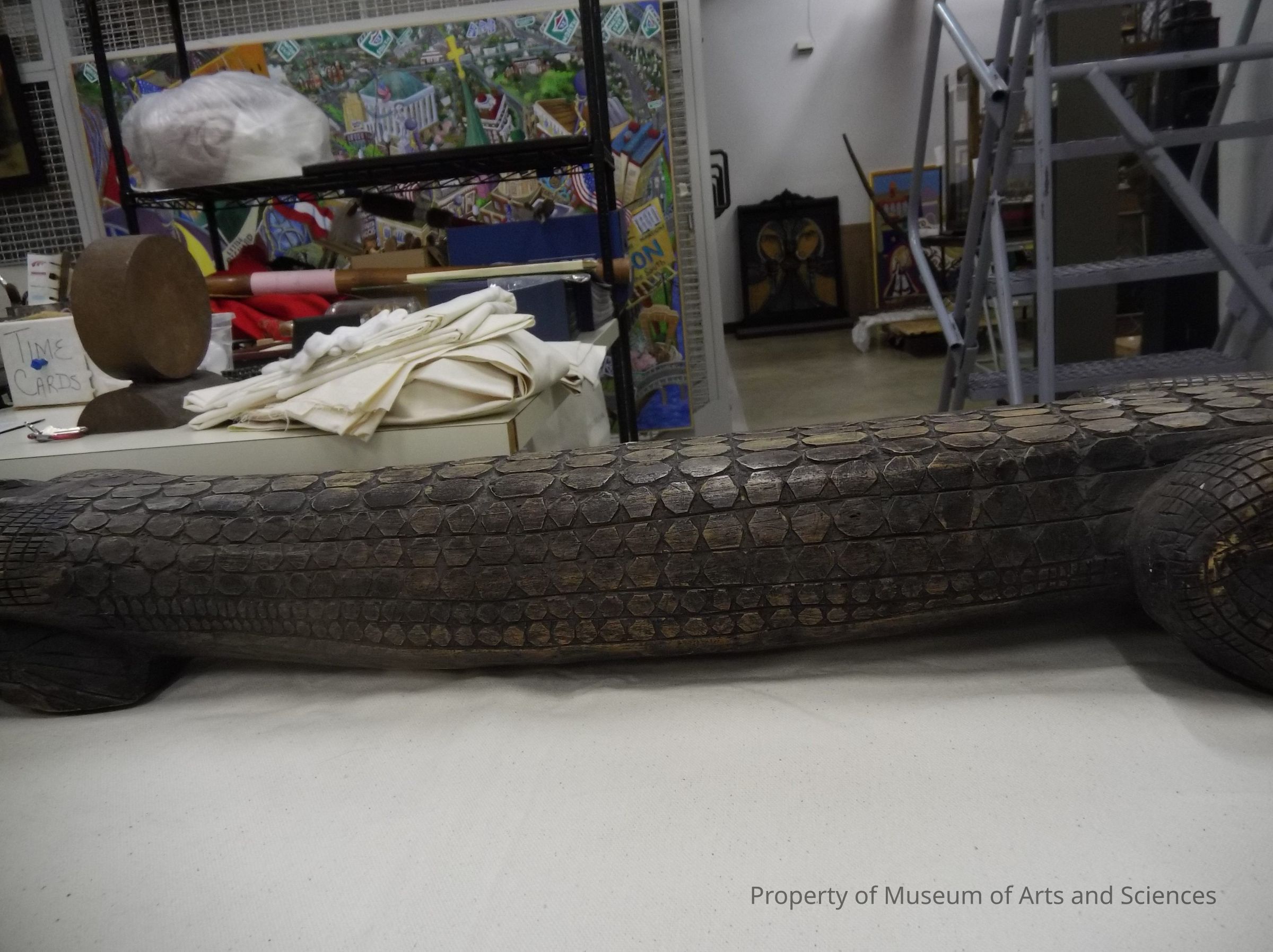 Black wooden stylized figure-carved scales and skin on crocodile figure of human stylized and rather crudeCollection