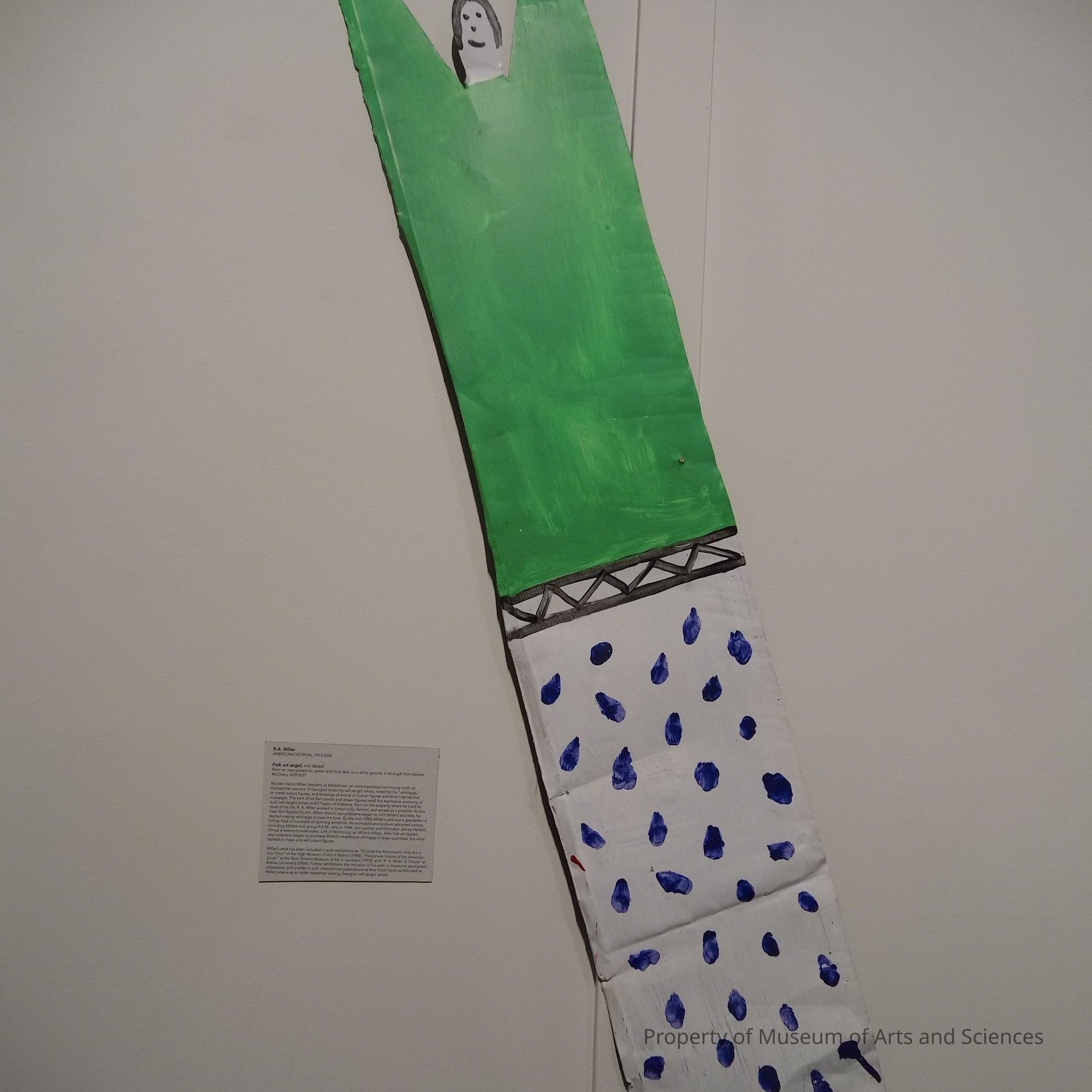 Green with blue dots on a white ground Described as an angel; signed at bottom, not dated.