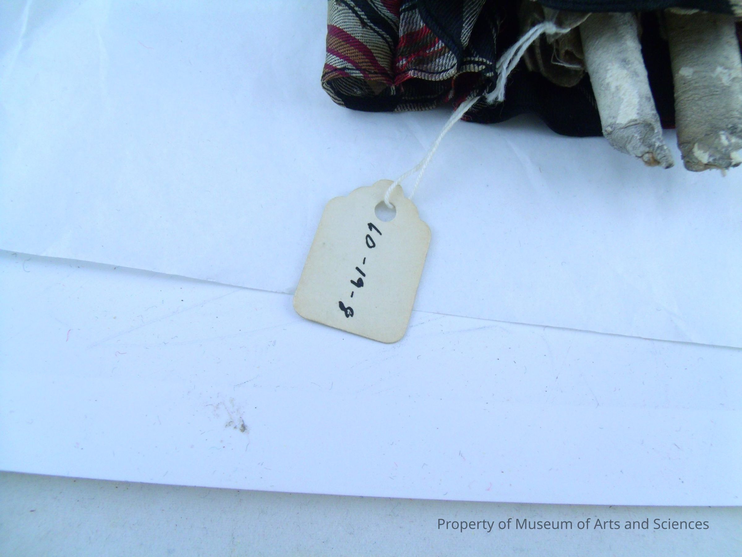 Victorian lady, black, tan and red plaid dress, silk, black hat