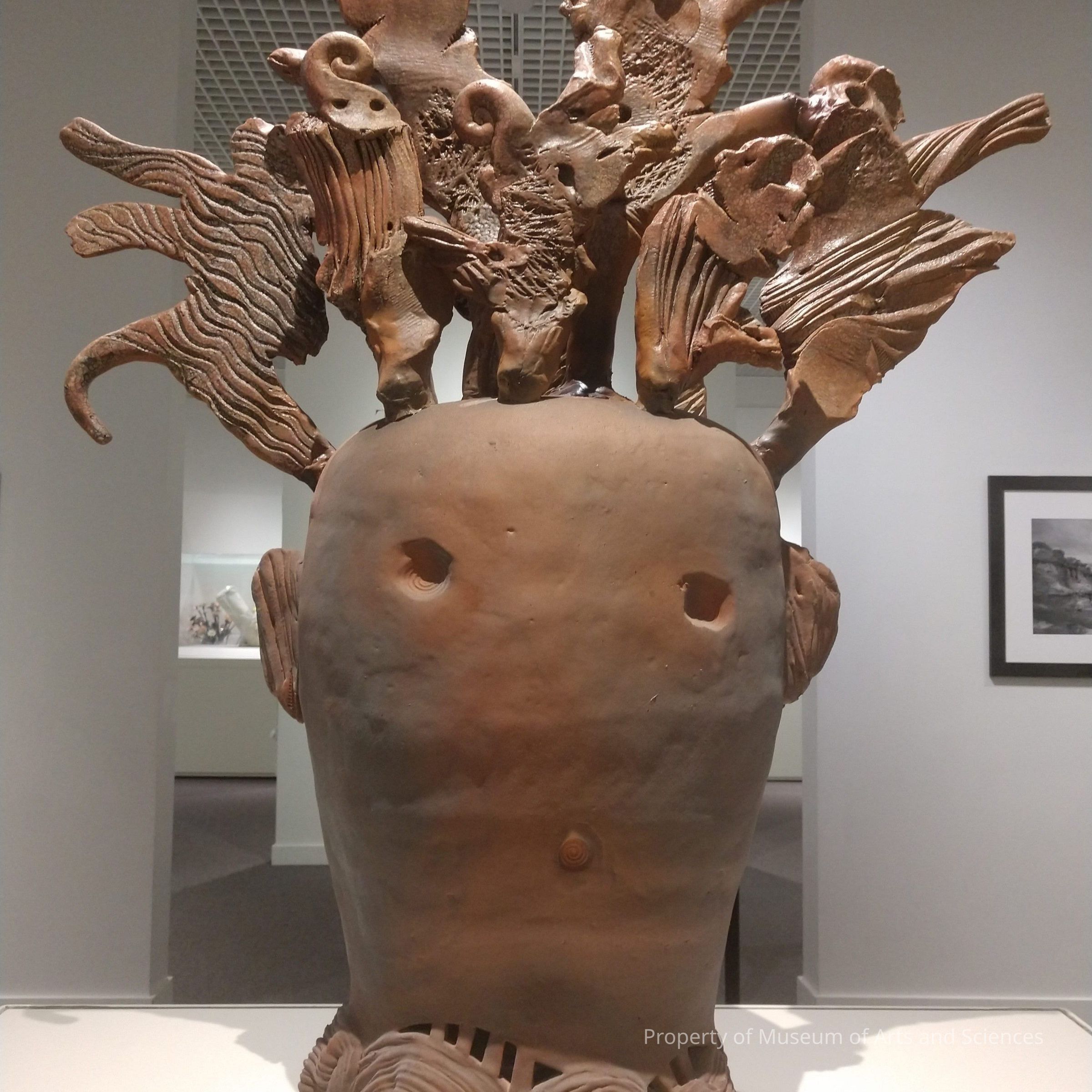 One of the nation's leading figures in clay, University of Georgia Emeritus Professor Andy Nasisse created "Loki Mesa" for the "Terra Animata" (or Animated Earth) exhibit hosted by MAS (May through October 2019). In this body of work, Nasisse celebrates the landscape of Utah as a magical place where the animistis imagination thrives in the suggestive eroded shapes that emerge and cast theit timeless shadows. "For many years," said the artist "I've been making sculpture that references the mythic possibilities of the figure, the metaphorical possibilities of the vessel, and the animistic extreme contrasts -- light and dark, hot and cold, parched dry terrain and sudden flash floods. A land of fantastical forms sculpted over millions of years by wind and rain, creating hoodoos, mesas, gulches, draws arches, towers, canyons, and buttes. His study of the landscape inspires his sculptures. "Like a lot of artists, my influences are eclectic and varied," said Nasisse. "I look at historical vessels, especially votive and burial pieces, japanese Haniwa, Peruvian pots, Mayan clay sculpture, killed Mimbres bowls, and mexican folk art, plus also the work of visionaries, outsiders, the Chicago imagists from the 1970's and authors like Cormac McCathy, Joseph Campbell, and Neil Gaiman."Collection