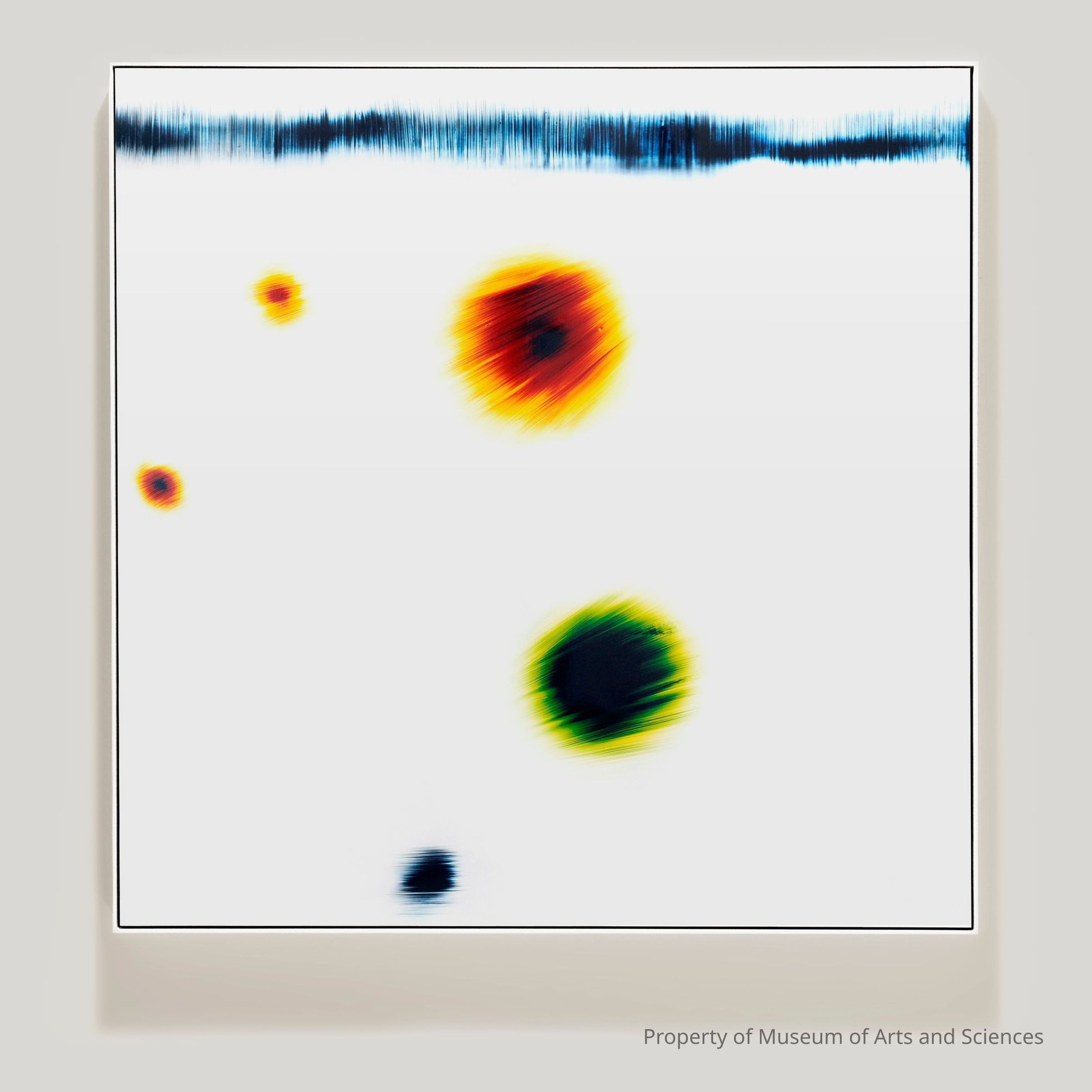 Sletcha's photograms are photographic images made without a camera. Using permanent pigments over prepared acetate. Slechta paints hard edge, geometric compositions that are later employed as a negative that filters direct pointes of light. Working in a totally darkened space, Sletcha moves a pen light across the surface of the painting. The light, which travels through the pigment is filtered in varying degrees by color, painting thickness, time, and distance. Each piece is unique, as the variables can never be duplicated.Artwork Details