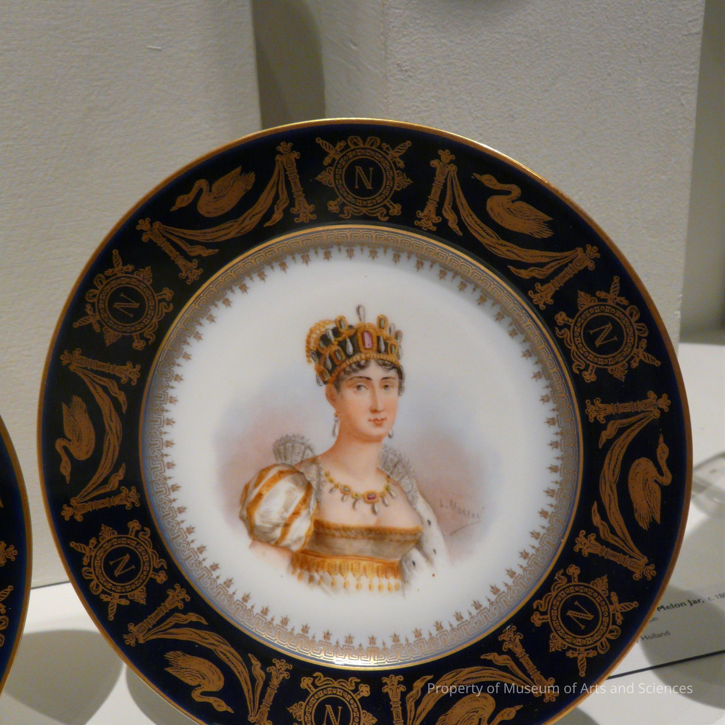 Porcelain plate with portrait of Josephine, cobalt blue banding with gilt symbols of the Empire; signed by L. Moreau, maker's markCollection