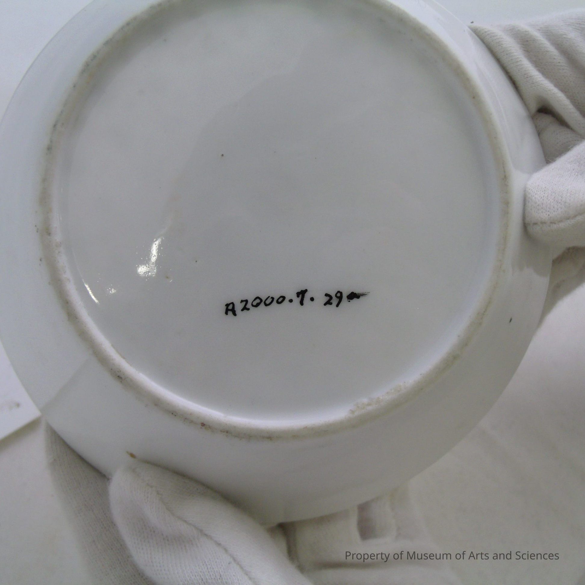 a French porcelain cup and saucer, Nast (a' Paris,) with violet and green floral sprays within gilt diamond pattern and decorated gilt handleCollection