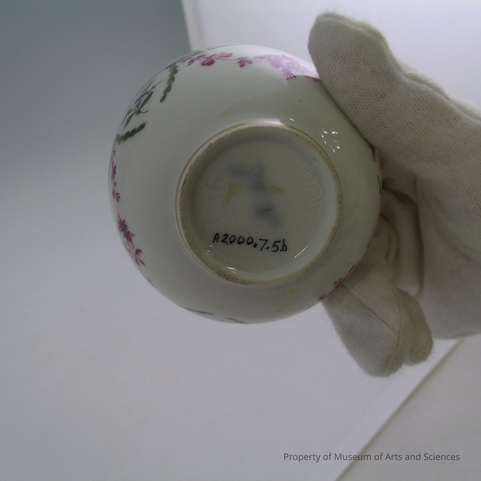 A handpainted Boisette Melun porcelain covered creamer with green leaves and rose sprays with gilt trim.Collection