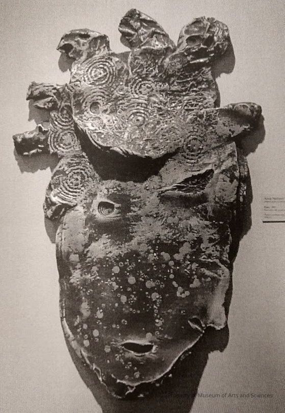 Surface is incised with stamped designs and other markings. This piece was exhibited in MAS exhibition "Inner Light Outer Dark"Collection
