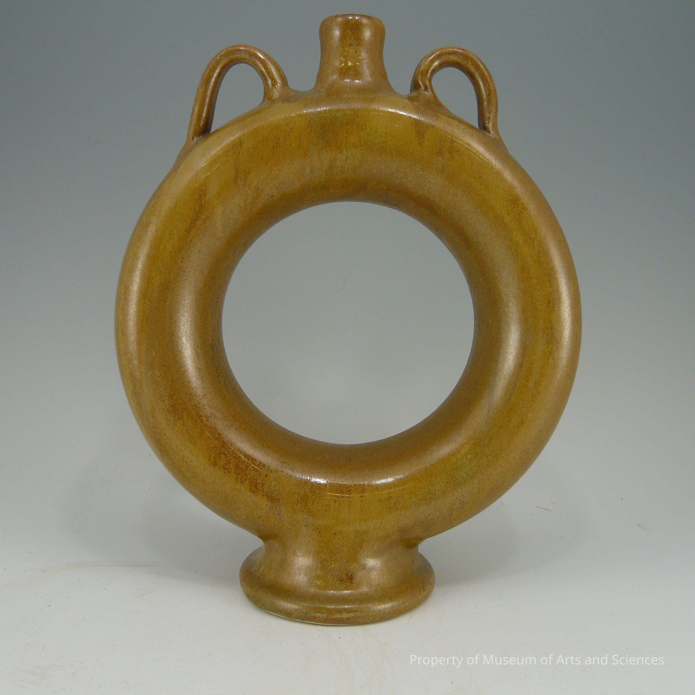 W. J. Gordy 1989; circular ring jug with mountain gold feldspathic glaze with lidCollection