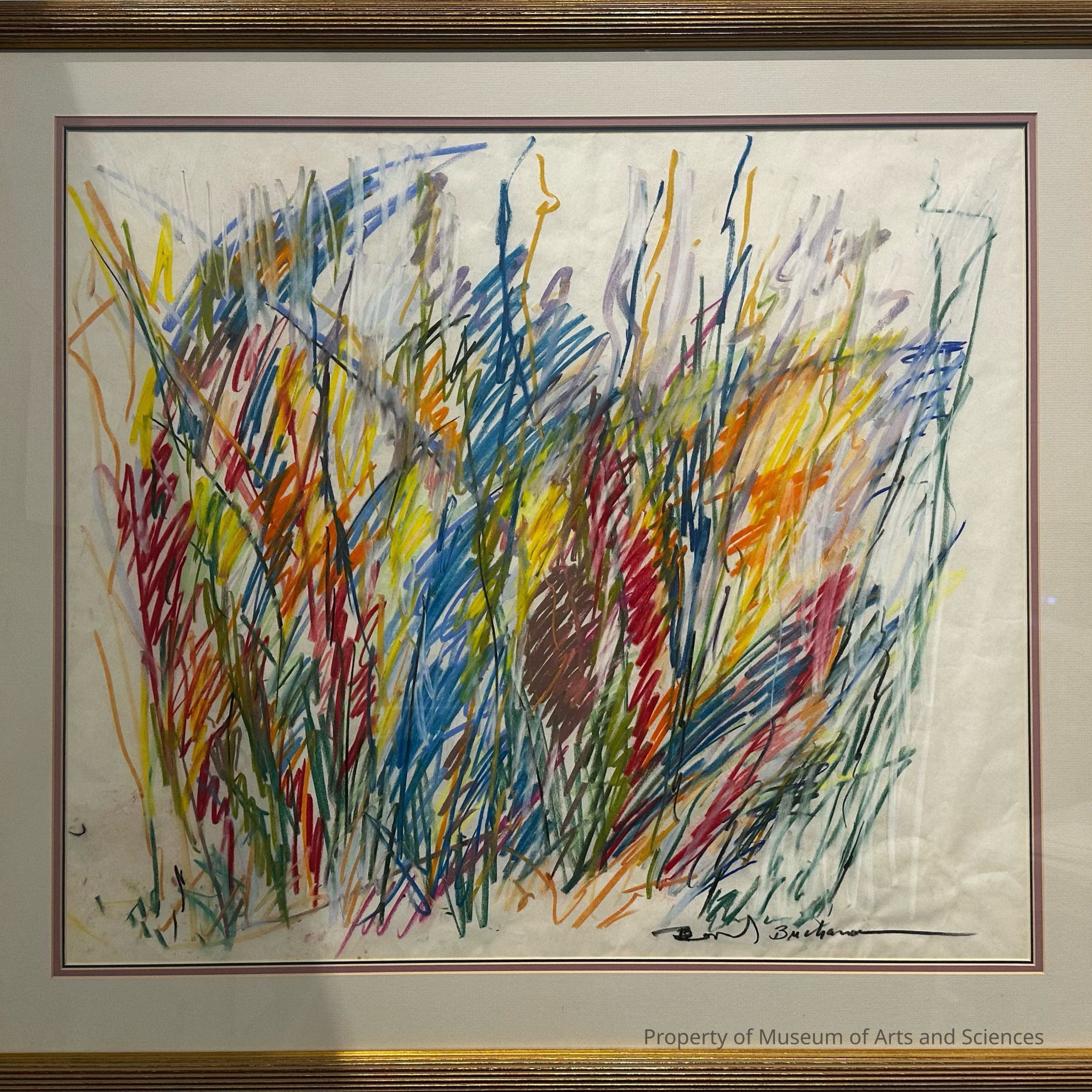 This is an expressionistic pastel in which line, color, and movement are the essential elements. By using these elements, the artist creates a feeling of a sea of grass glowing with color and moving and bending in the wind.