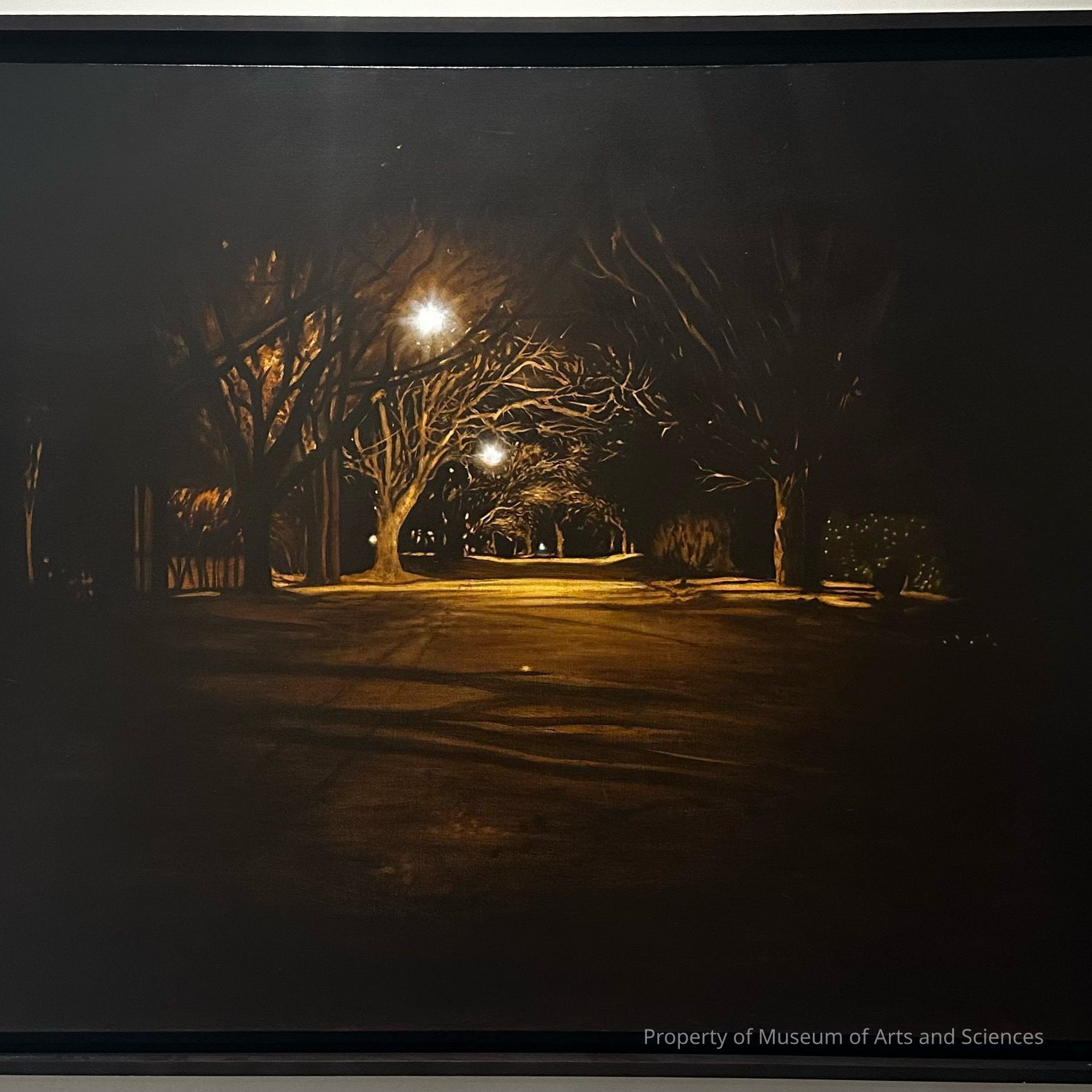This painting possesses a photographic quality, but the style is a result of Moss' distinctive painting technique. He covers his canvas with dark washes of color, gradually laying in additional washes of color, each progressively lighter in nature, until he concludes with the brilliant highlights seen here.Collection