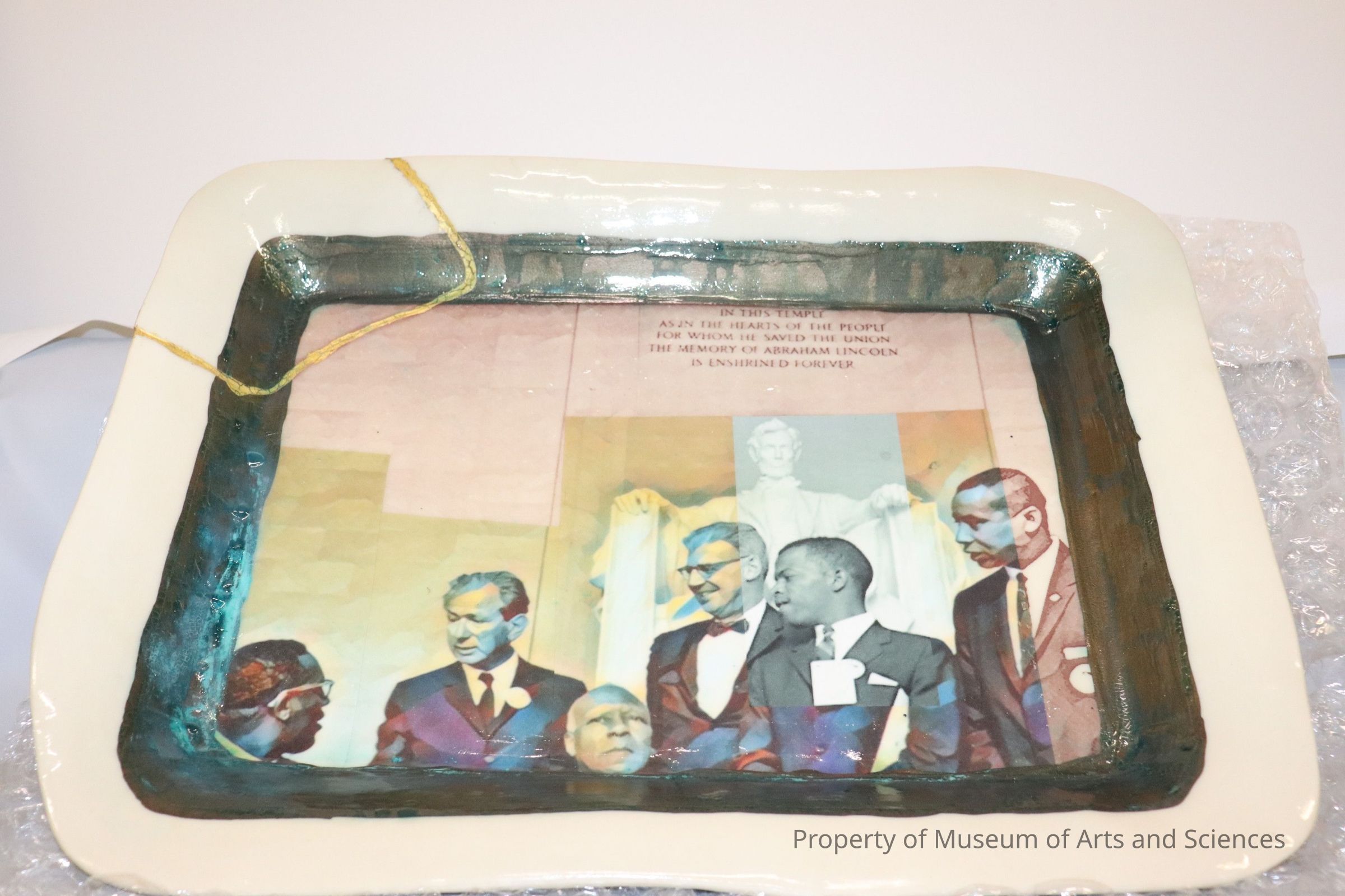 This platter is taken from a body of work inspired by the 2010 words of Congressman John Lewis; a body of work that examines the history of the United States through the lens of the dinner table, wherein diverse perspectives and narratives of historical events are presented as a series of place settings and serving pieces.