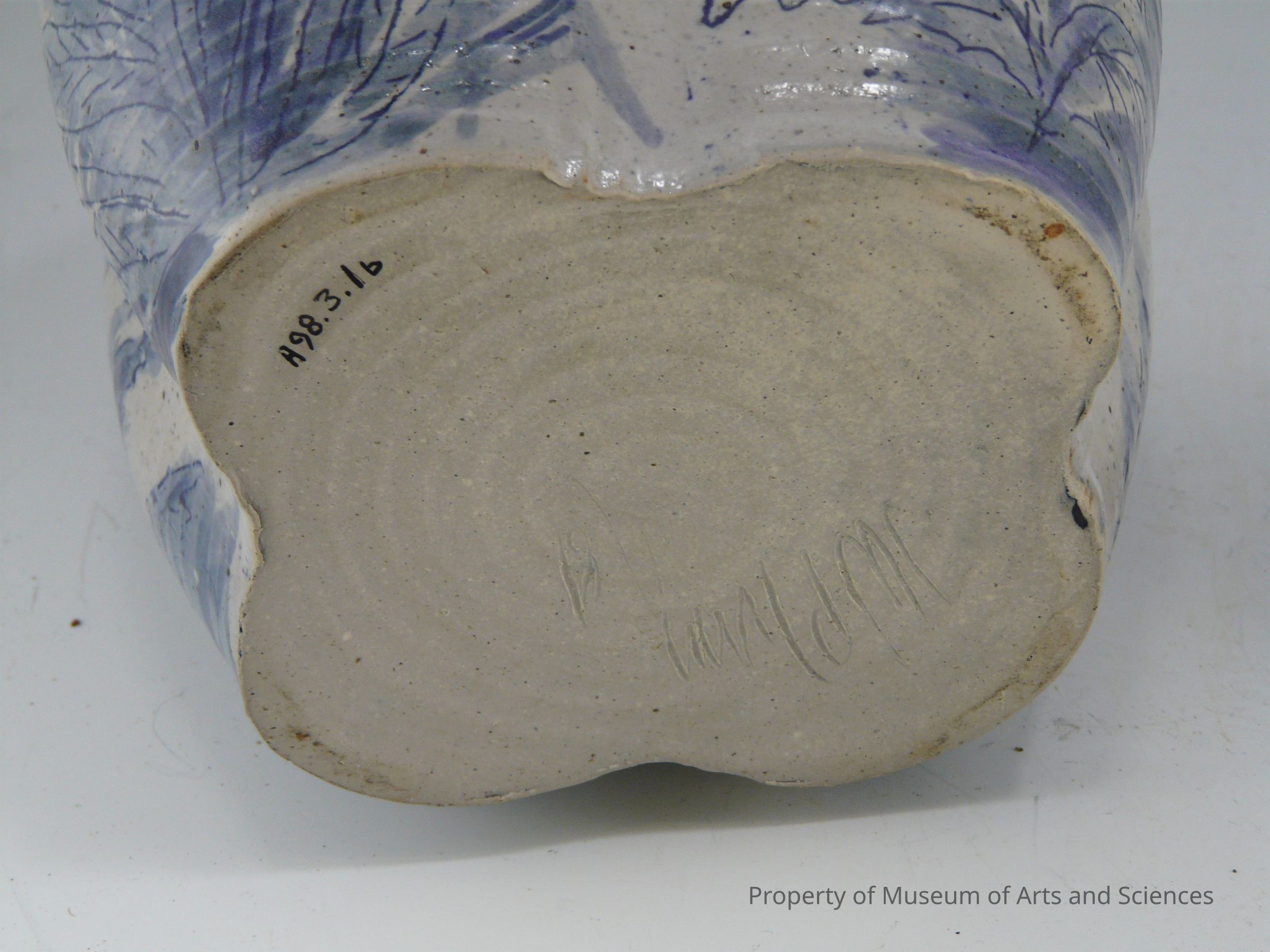 Stoneware ginger jar with lid, white stoneware with simi-matte glaze and blue cobolt floral decorationCollection