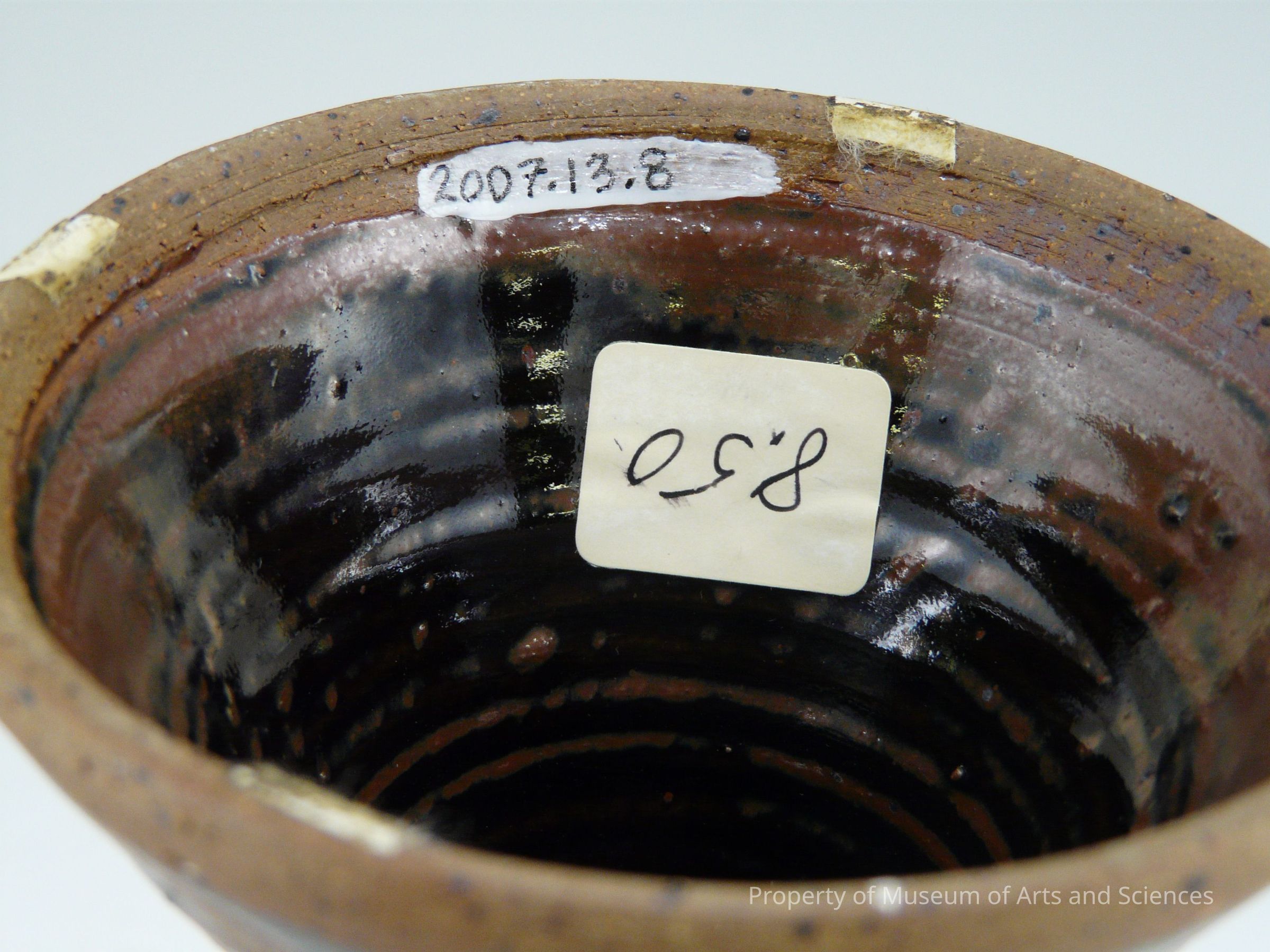 brown/black goblet. 9"h. Rim diameter 3". Base diameter 4".Collection