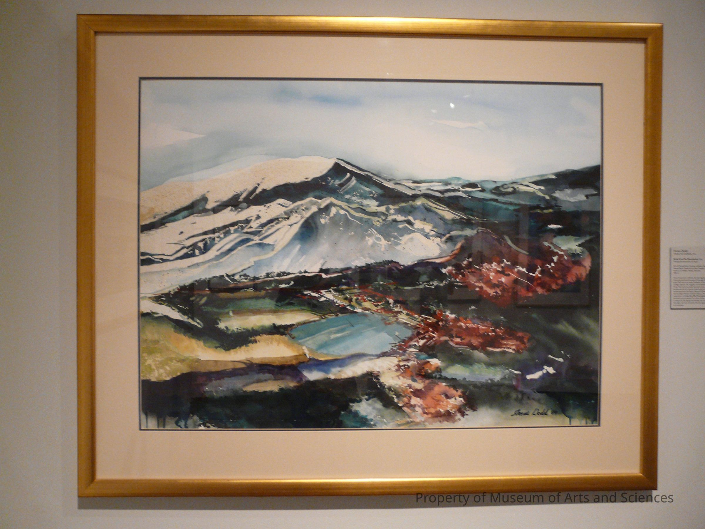 The transparent watercolors of God, Give Me Mountains displays a unique luminosity and virtuosity. The white of the watercolor paper is integral to the design and enables the artist to capture the bold light and dark contrasts that are signatures of her work and technique.Artwork Details