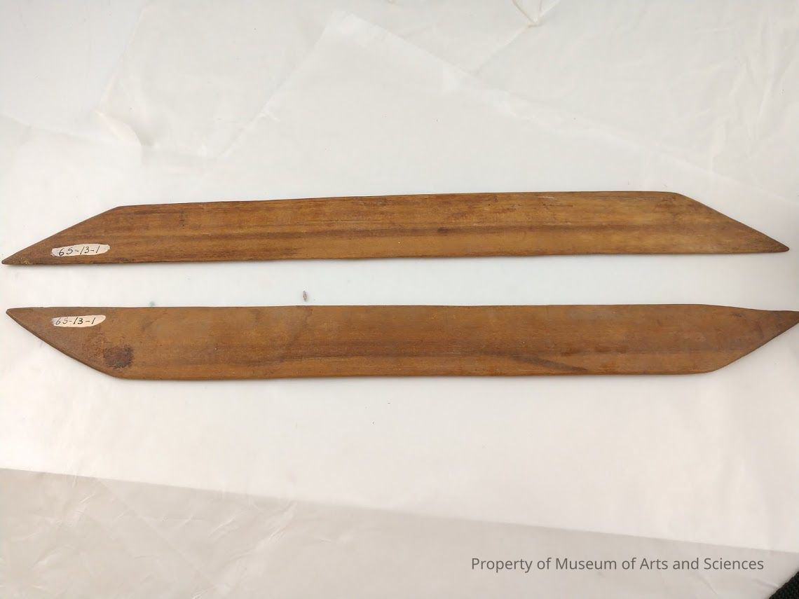 About 12" long wooden shuttles, white woven strip