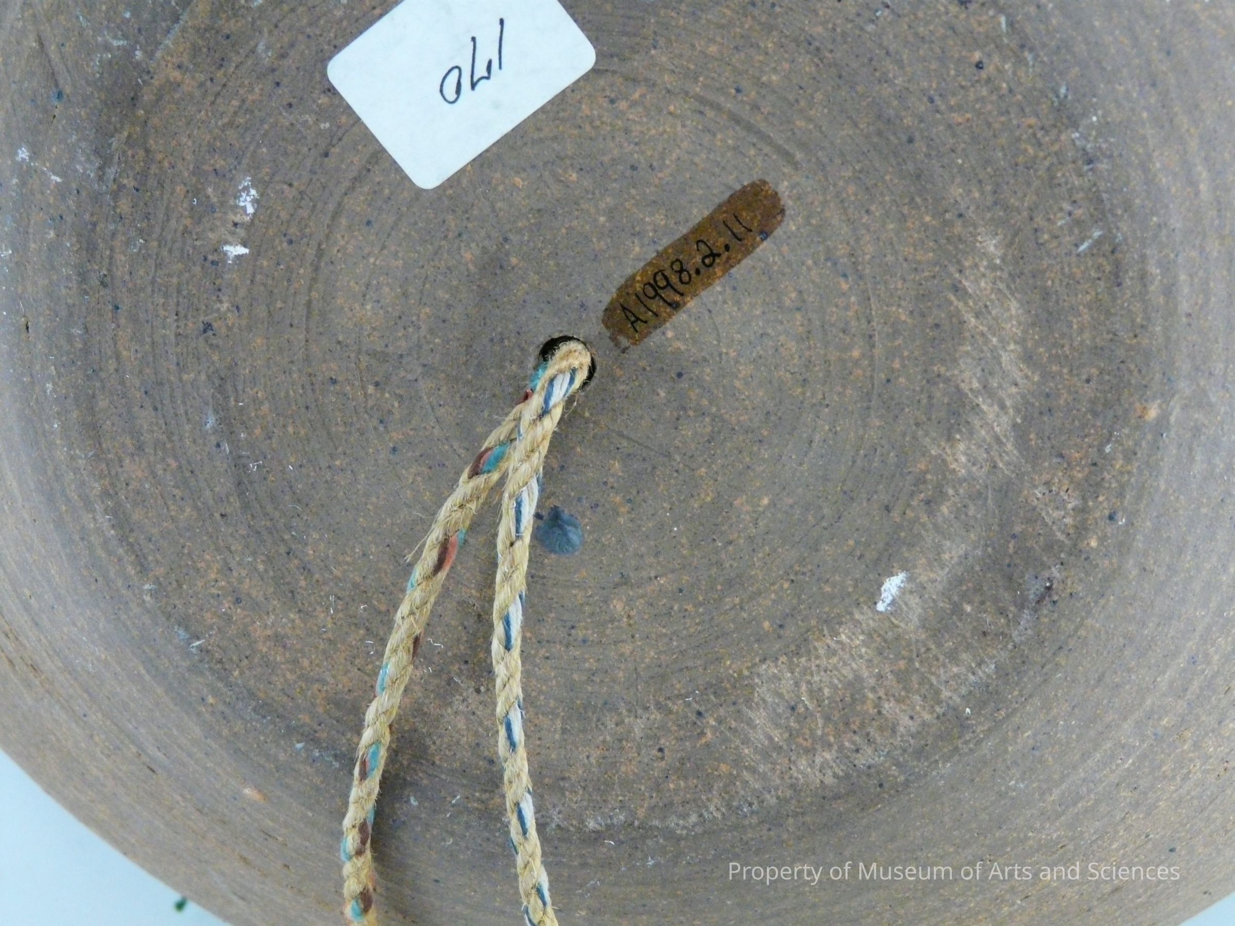 Hanging bowl with fish glazed and unglazed stoneware segments connected with fileArtwork Details