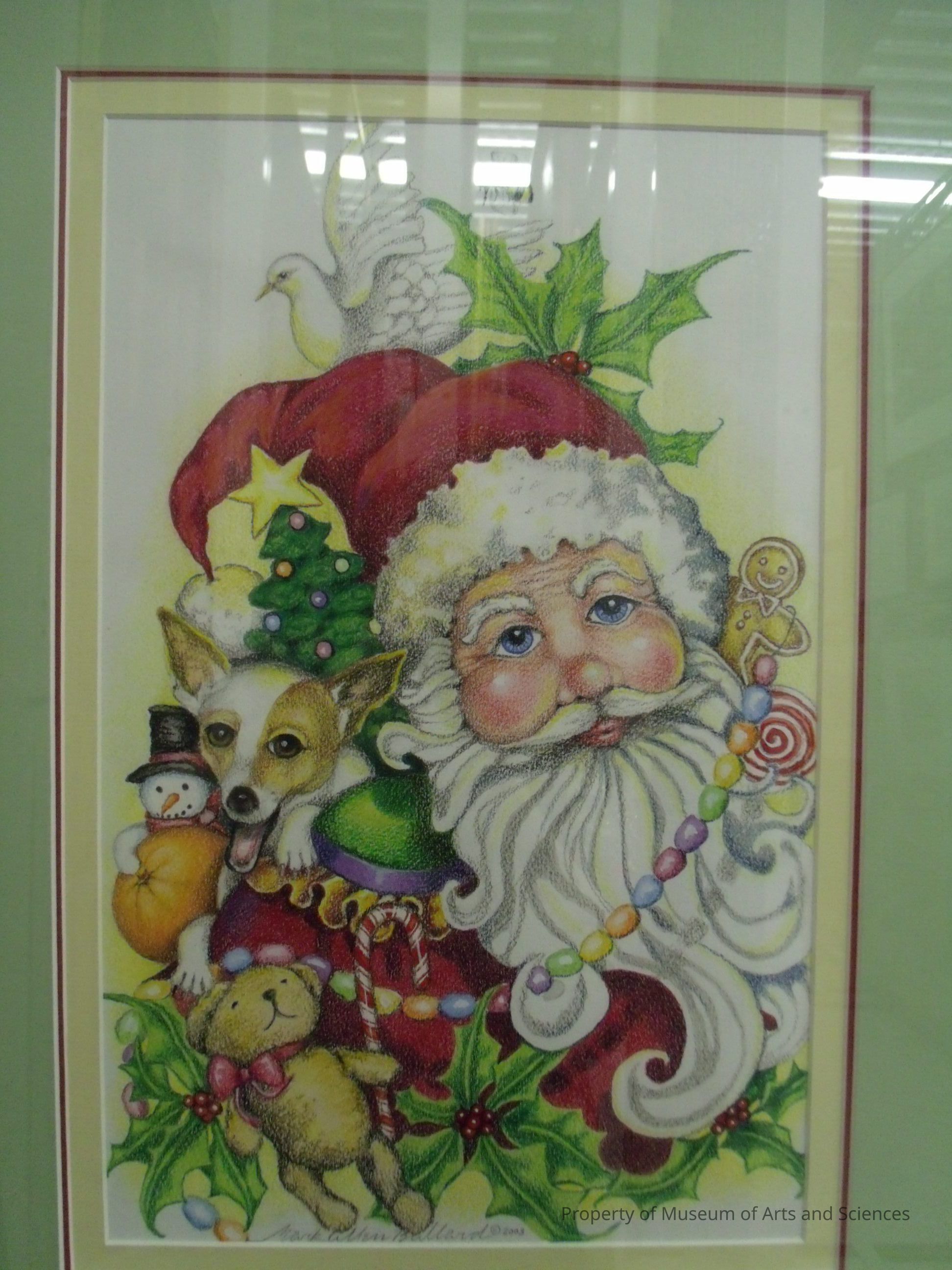 Framed original painting from the series entitled "Ten Years of Mark Ballard Santas"Collection
