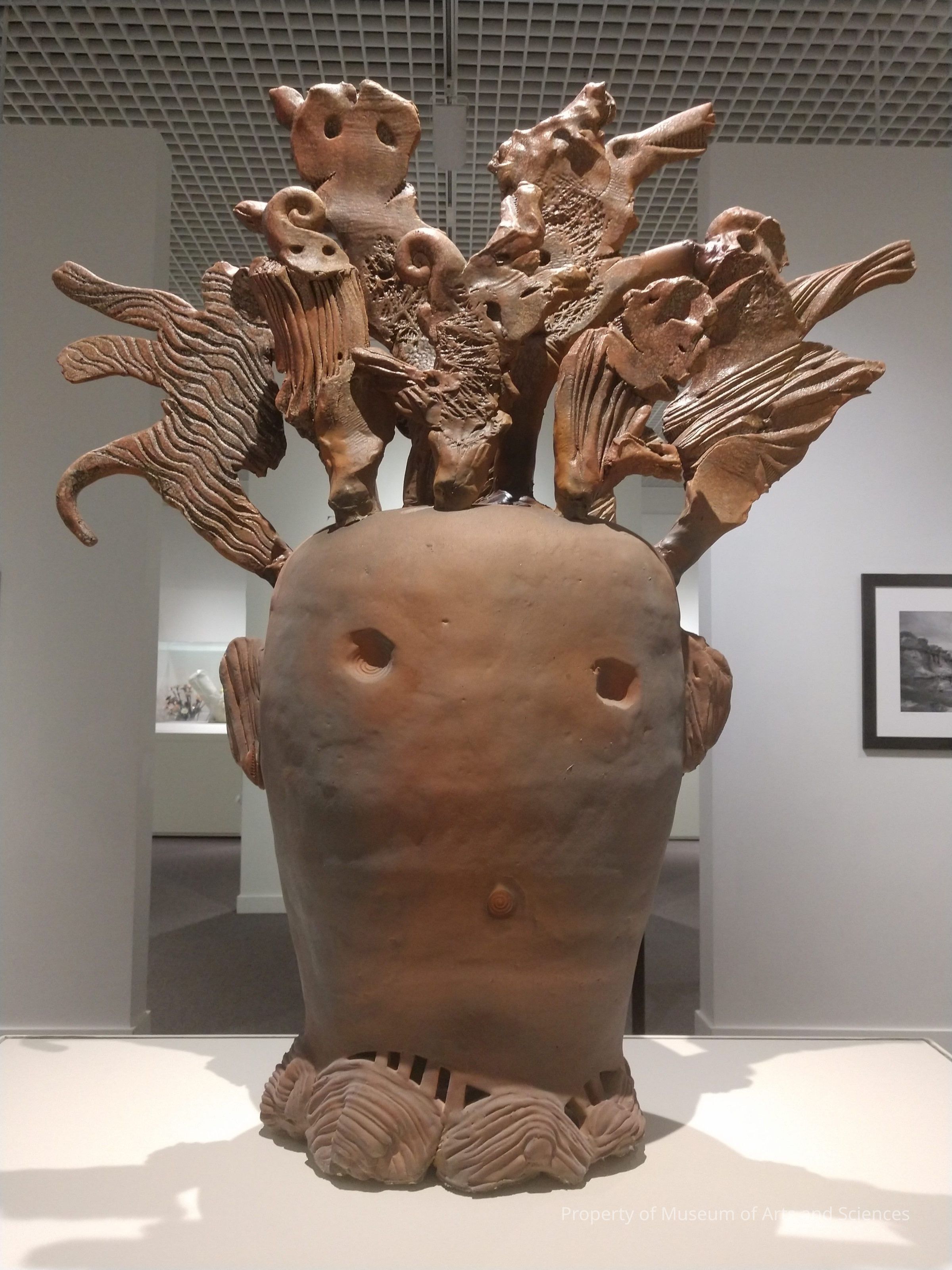 One of the nation's leading figures in clay, University of Georgia Emeritus Professor Andy Nasisse created "Loki Mesa" for the "Terra Animata" (or Animated Earth) exhibit hosted by MAS (May through October 2019). In this body of work, Nasisse celebrates the landscape of Utah as a magical place where the animistis imagination thrives in the suggestive eroded shapes that emerge and cast theit timeless shadows. "For many years," said the artist "I've been making sculpture that references the mythic possibilities of the figure, the metaphorical possibilities of the vessel, and the animistic extreme contrasts -- light and dark, hot and cold, parched dry terrain and sudden flash floods. A land of fantastical forms sculpted over millions of years by wind and rain, creating hoodoos, mesas, gulches, draws arches, towers, canyons, and buttes. His study of the landscape inspires his sculptures. "Like a lot of artists, my influences are eclectic and varied," said Nasisse. "I look at historical vessels, especially votive and burial pieces, japanese Haniwa, Peruvian pots, Mayan clay sculpture, killed Mimbres bowls, and mexican folk art, plus also the work of visionaries, outsiders, the Chicago imagists from the 1970's and authors like Cormac McCathy, Joseph Campbell, and Neil Gaiman."Collection