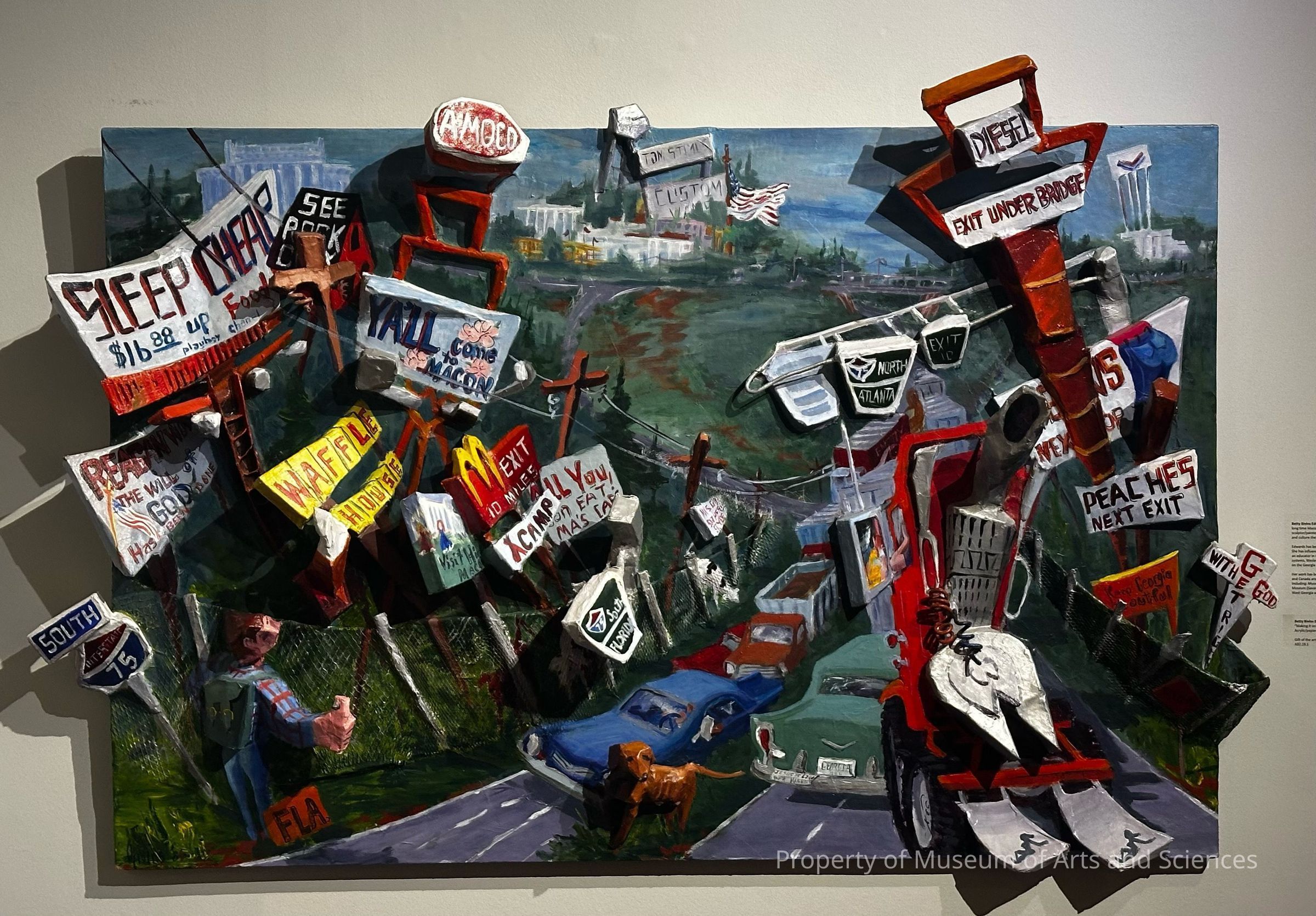 Raised not more than twenty miles from the hometowns of Flannery O'Connor and Alice Walker, Betty Bivins Edwards continues in their tradition with her visually compelling views of Southern life, recorded not in print but sculptural relief. In I-75 she focuses on the imagery of the New South using the interstate and the nearby structures and signage as a satirical commentary on the rootlessness and ever-hurried lifestyle of the present age.Collection